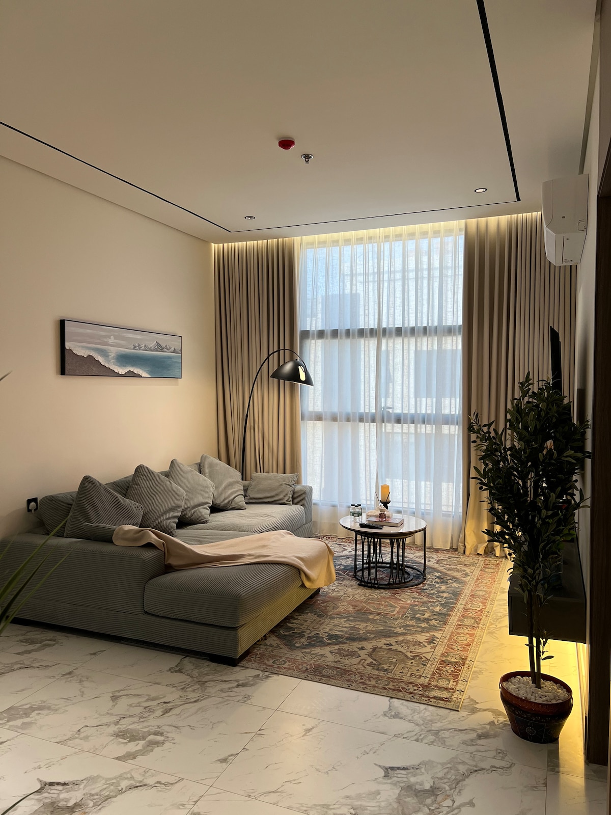 Welcome to our stylish studio apartment in Khobar. This modern space is perfect for solo travelers or couples seeking comfort and entertainment. The studio features a comfortable bed and sofa, a well-equipped coffee corner, a cabinet. Enjoy your favorite shows on the 60" Smart TV. Whether you're catching up on your favorite series or enjoying a movie night, the entertainment is at your fingertips. High speed fiber internet has been installed!