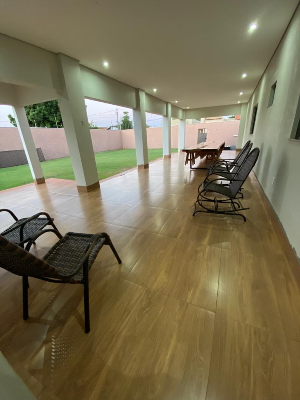 A casa tem muito conforto e lazer, área construída de 300 metros, toda arejada com ar condicionados nos quartos e na sala de televisão, à sala é composta por um sofá retrátil de 3 metros, Tv de 85 polegadas, ar-condicionado 18 mil btus. A cozinha é muito completa, com todos os utensílios, panelas, pratos, talheres, copos, xícaras, fogão, forno, Airfrayer. O Quintal todo gramado, espaço de 360 metros livre com a piscina de 6 metros.