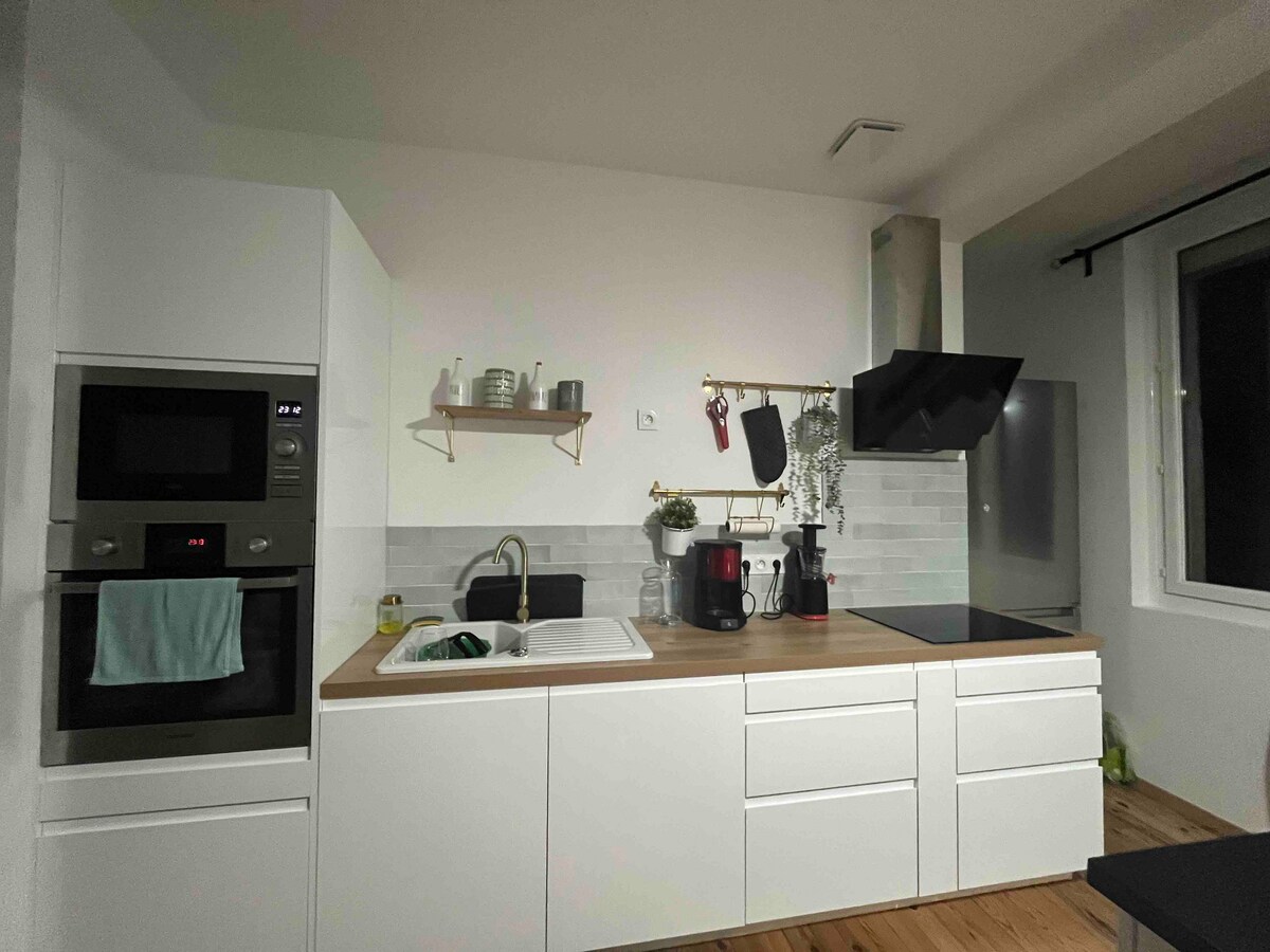 Welcome to our charming 40 m2 air-conditioned house, nestled in a peaceful hamlet, ideal for a romantic getaway or business trip. This elegant house has been completely renovated with quality materials and attention to detail to offer our guests the comfort and style they need to feel at home. The equipped kitchen is extremely functional. The night area is cozy and warm. The house benefits from a small inner courtyard.