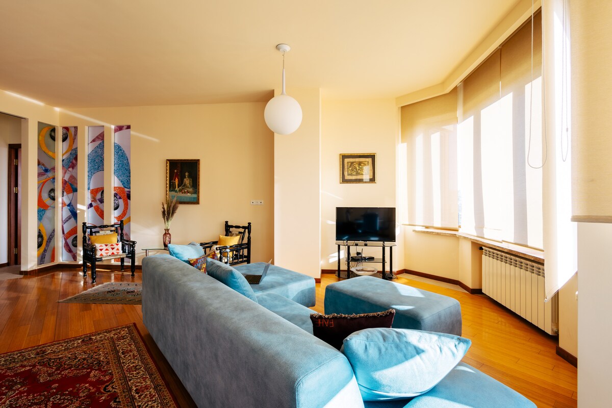 This is one of our 14 unique apartments, which are located next to Dalma Shopping Mall, several meters from Armenian Genocide Memorial Museum, Yerevan Brandy Factory and Central Bus Station. Republic Square is 1,9 km away or just 25 minutes by walk. The apartment is designed by the latest trends of modern interior design with the help of Armenian artists. You will enjoy the view from the balcony to the whole city and to Mount Aragats.
