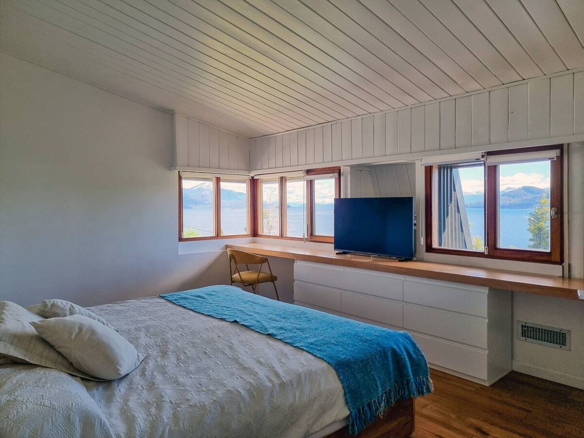 Fonsagrada.Bariloche Charming house located in a residential neighborhood with easy access. Surrounded by Patagonian nature in the west of Bariloche, just 300 meters from the beach and Nahuel Huapi Lake. Two fully equipped and heated floors with spacious and bright areas. Its exuberant garden offers panoramic views of Campanario and López Hills. Comfort, tranquility, nature, and wellness invite you to enjoy an authentic stay in a unique and unparalleled environment.