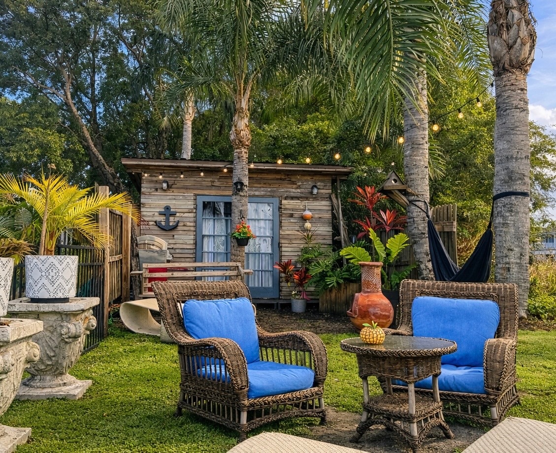 Romantic lakefront cabin with Costa Rica vibes in Orlando. Wake to sunrise views from your heated king bed. Sip Cuban espresso in the garden, walk or bike to Baldwin, Winter Park & Downtown or explore The Cady Way Trail. Enjoy a couple’s rain shower, grill, fire pit, and hammock. Guests love the peaceful setting, artful touches, and location minutes from the airport, arena & trails. Perfect for anniversaries, solo stays, and creative escapes. ⚠️Sorry - there is no lake DOCK access.