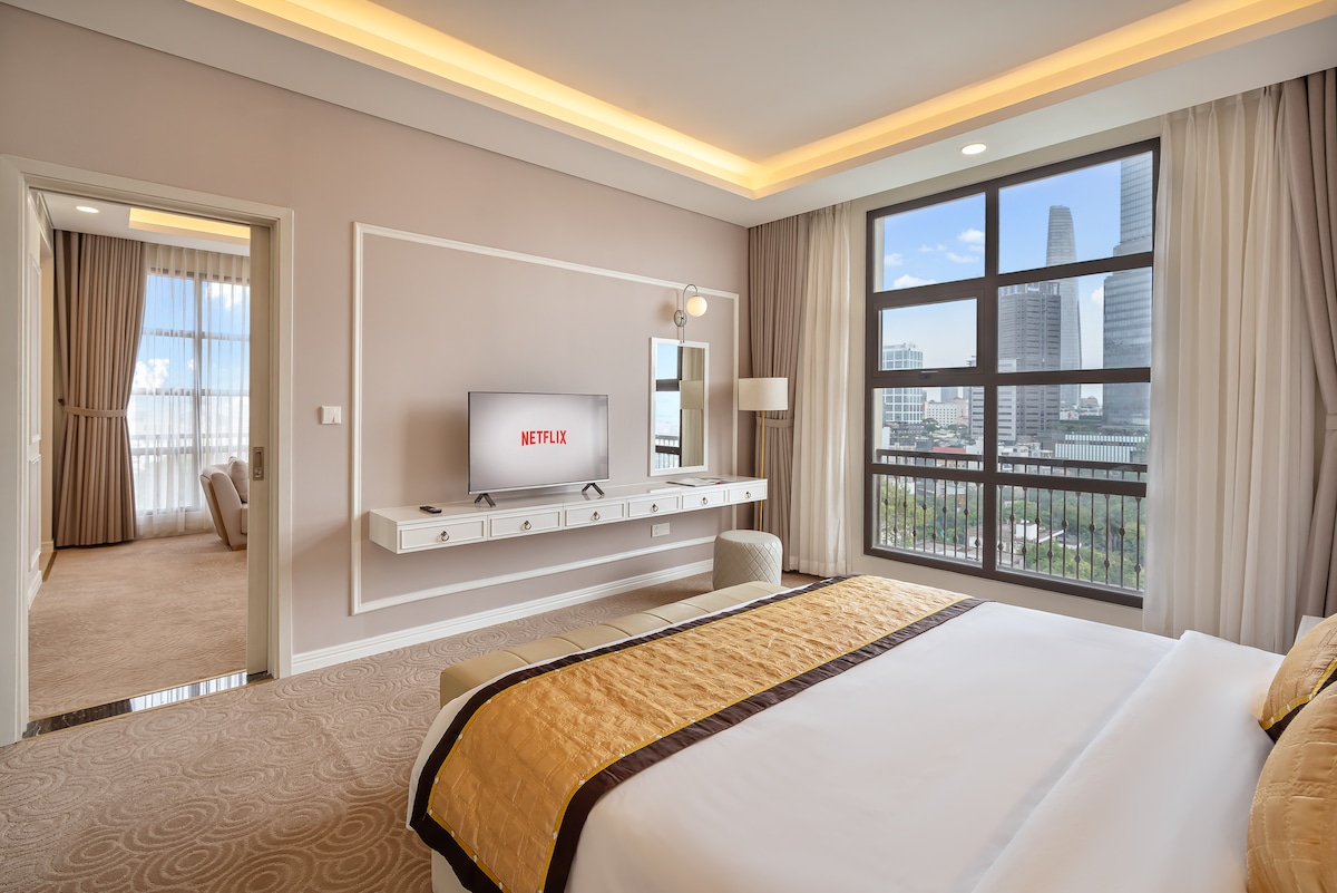 Set on a fresh, tree-lined street in the heart of Saigon, this residence stands out instantly. The building feels nicely designed, and the calm, leafy neighborhood keeps everything cool and peaceful while iconic landmarks stay just steps away. Inside, the suite is bright, elegant, and fully renewed, with every detail set for a long, comfortable stay. Open the curtains and the city spreads out in a wide, beautiful view.
