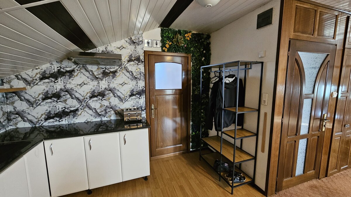 The apartment is located is a very quiet area and is newly renovated. The kitchen is equipped with a laundry machine,fridge,stove,pan and a pot. The bedroom has a gig bed 160 × 220 cm and flat screen tv with more than 70 channels and free Wi-Fi. In the bathroom you have hand soap,shampoo and hair drier. To the city center(old town) there are 12-15 min of walking or 5min by taxi ( 2€ ), to the train station 5 min of walking and Lidl market is situated next to the apartment.