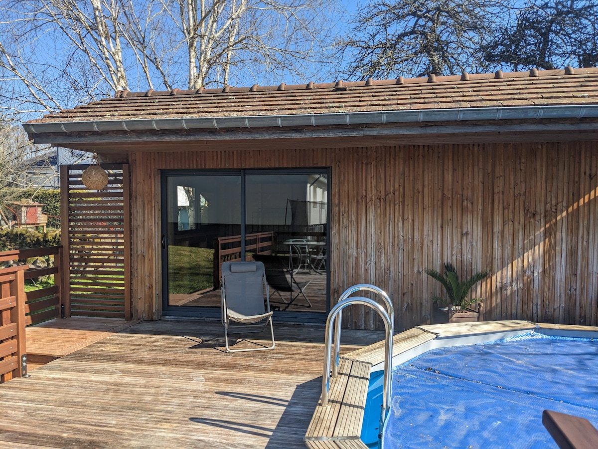Chalet 4* exclusivement pour vous, avec Piscine Intérieure Chauffée toute l'année à 28° Espace SPA avec Jacuzzi+ SAUNA infrarouge privés Toute l'infrastructure vous est exclusivement réservée, il n'y a pas d 'autre vacancier ni propriétaire dans le chalet Sans vis à vis, le chalet est isolé au cœur de la forêt Barbecue charbon, Grande terrasse équipée Parc privé avec moutons, Echiquier géant et Slake Line pour s'amuser au grand air Le chalet a été crée par Sébastien, du gros œuvre au mobilier