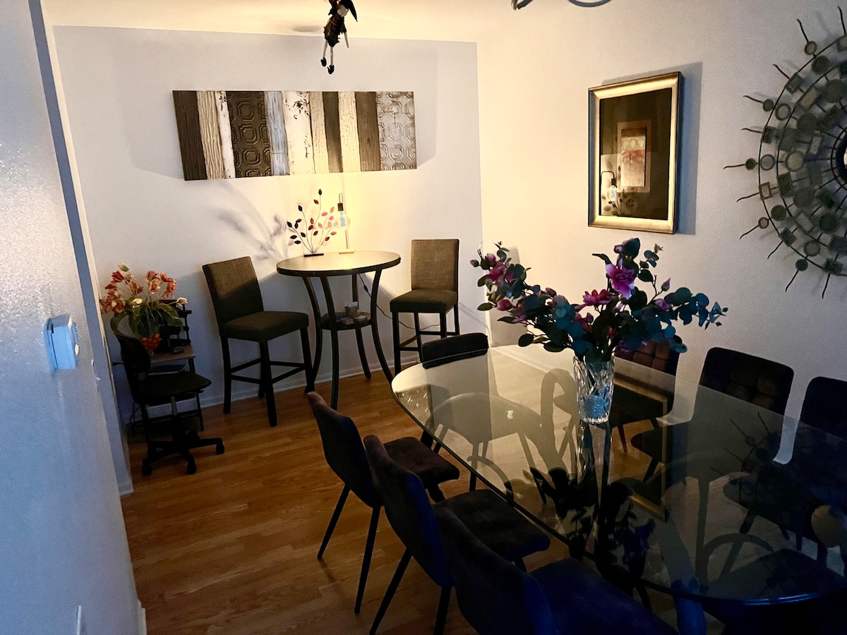 Newly remodeled....3 levels, 3 bedrooms and an entire lower level with 2 queen beds and 75in TV. Access within a block to just about anything....restaurants, movie theater, gym, parks, pond, etc.... Large backyard, Fireplace for those cools nights.... 6 miles from downtown Madison. An Uber away! 30 min from Cascade Mountain for skiing, tubing hiking!! Devils Head Mountain/Lake is a short drive