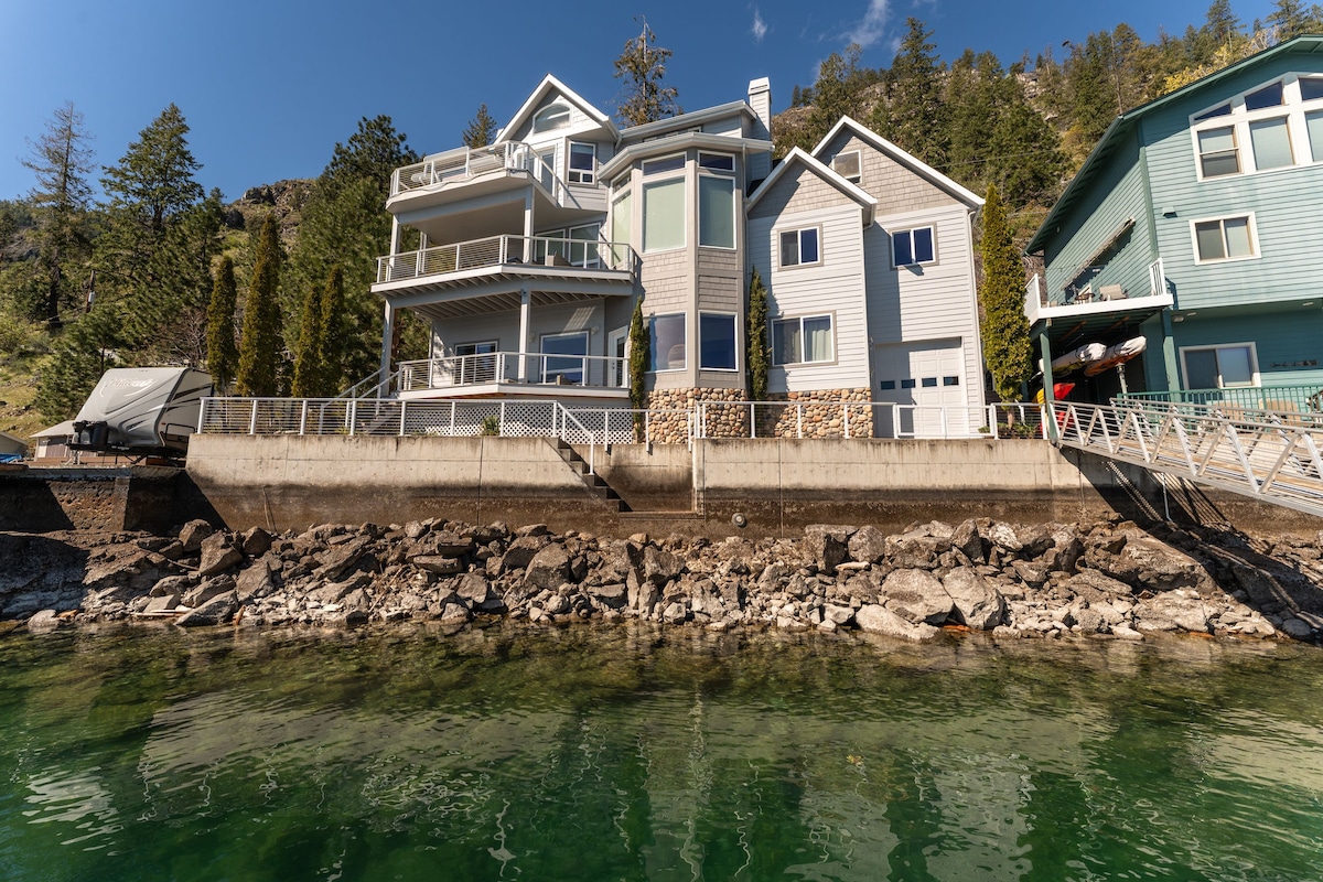 Location! A full custom designed, elegantly constructed home with a rustic-industrial flare. This home offers COMMANDING LAKE VIEWS all within a mile of Downtown Chelan. Enjoy the shared dock in one of the warmest swimming bays on Lake Chelan. MAIN LEVEL LIVING- master bedroom/bath, great room, kitchen all on one level. Guest Suite above and a generous rec room below with 2 additional bedrooms, second kitchen and a billiards area, all leading out to the LUXURIOUS INFINITY EDGE POOL and SPA.