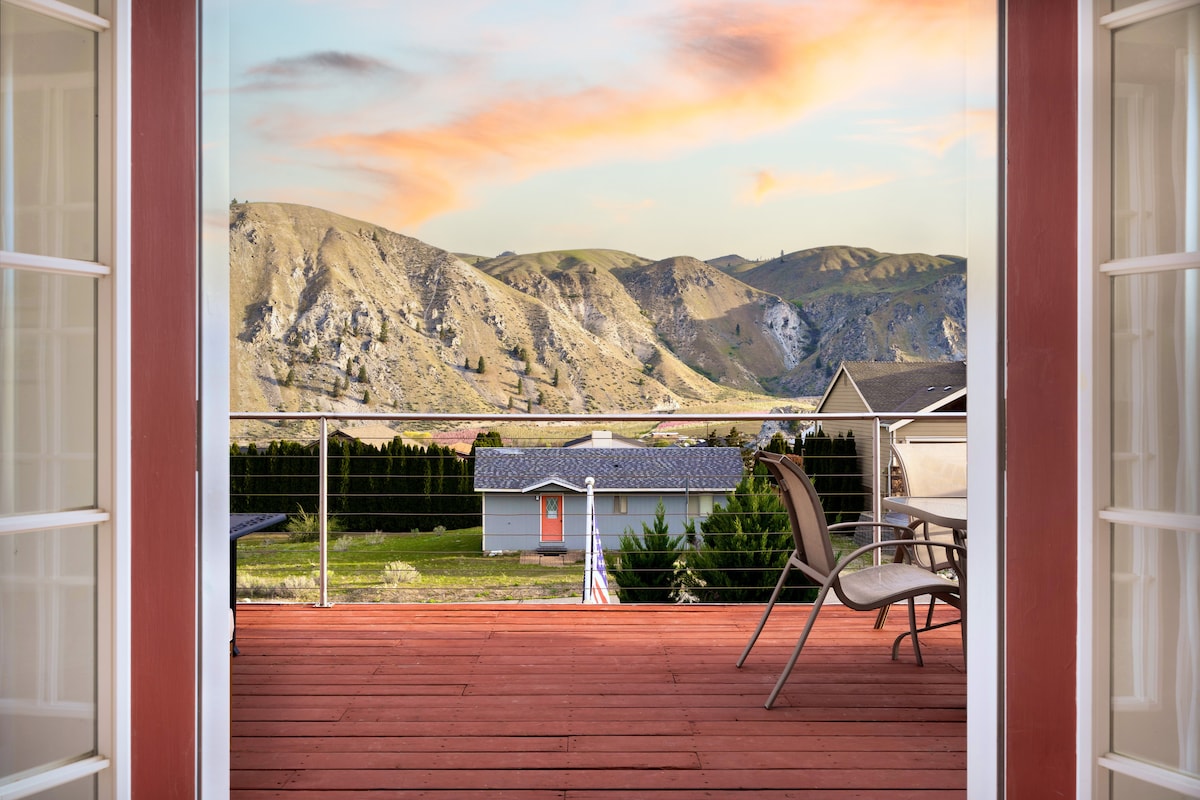 Sun Cove Lake View Retreat - sweeping Columbia River and mountain views just 18 minutes from Lake Chelan. Sleeps 8 with 3 bedrooms, 2 baths, and two outdoor living spaces, including a sunset-ready deck with BBQ and fire table. Full access to the community pool, private beach, boat launch, pickleball courts, and 9-hole disc golf. Only 4 minutes to concerts at Rocky Pond Estate Winery and minutes from boating, wineries, and summer lake days. Your Central Washington summer basecamp.