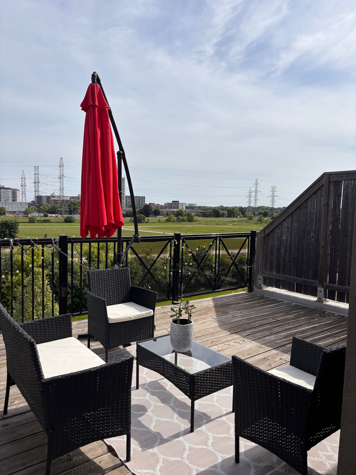 *Click the ❤️ Save button in the top-right corner to easily find us again before your dates are booked* Enjoy your stay in Spacious 5BR, 3.5BA retreat with HGTV-style open layout, featuring a deck balcony surrounded by color changing maple trees, fenced backyard with charcoal grill, patio deck, and outdoor seating, executive office, fast Wi-Fi, 1-car driveway, and indoor gym with treadmill, weights, and yoga mat. Game room features basketball arcade. Minutes from downtown Toronto, airport.