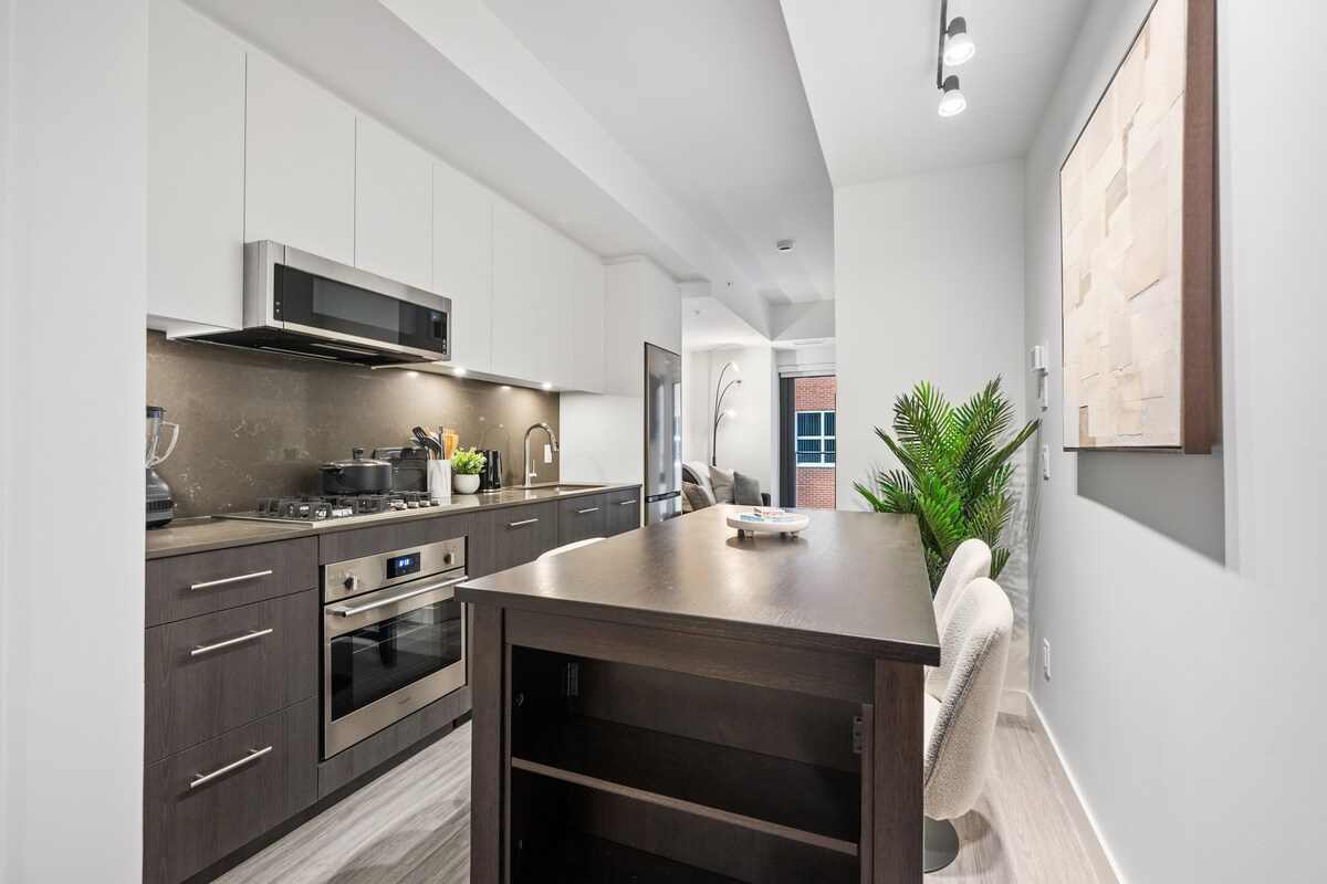 Be a part of Calgary’s skyline in this beautifully designed building; inside and out. You will enjoy views from every room with floor to ceiling windows and an outdoor patio furnished with high end furniture. Kick back and relax as you bask in the Calgary sun and taking in the views! Located between the Downtown Core and 17th Avenue, you are central to all major Downtown shopping, restaurants and shops.