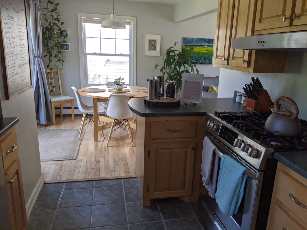 This spacious apartment is located on the top floor (just 16 steps). We Airbnb while we enjoy Cape Breton in the summer! Enjoy the convenience of walking to restaurants, bars, grocery stores, universities and more. It is in a quiet, safe neighbourhood in Halifax’s sought-after South End. The apartment features an open-concept, fully equipped kitchen and comes complete with everything you need for a comfortable stay — all utilities, high-speed internet, 4K TV, linens, and parking are included.