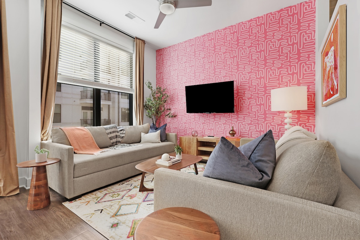 Our 1st luxury apt in the Burnham building. I had so much fun designing this one with the assistance of my amazing designer friend. PERFECT location to get the FULL Nashville experience! Walking distance to all attractions. Enjoy the GORGEOUS pool by day & fire pit at night, plus a gym! Broadway (Honky Tonks & Live Music), Bridgestone, Nissan Stadium, The Music City Center, Ryman Auditorium, The Convention Center, Honky-Tonks, Printer's Alley, Ole Smoky Moonshine & more.