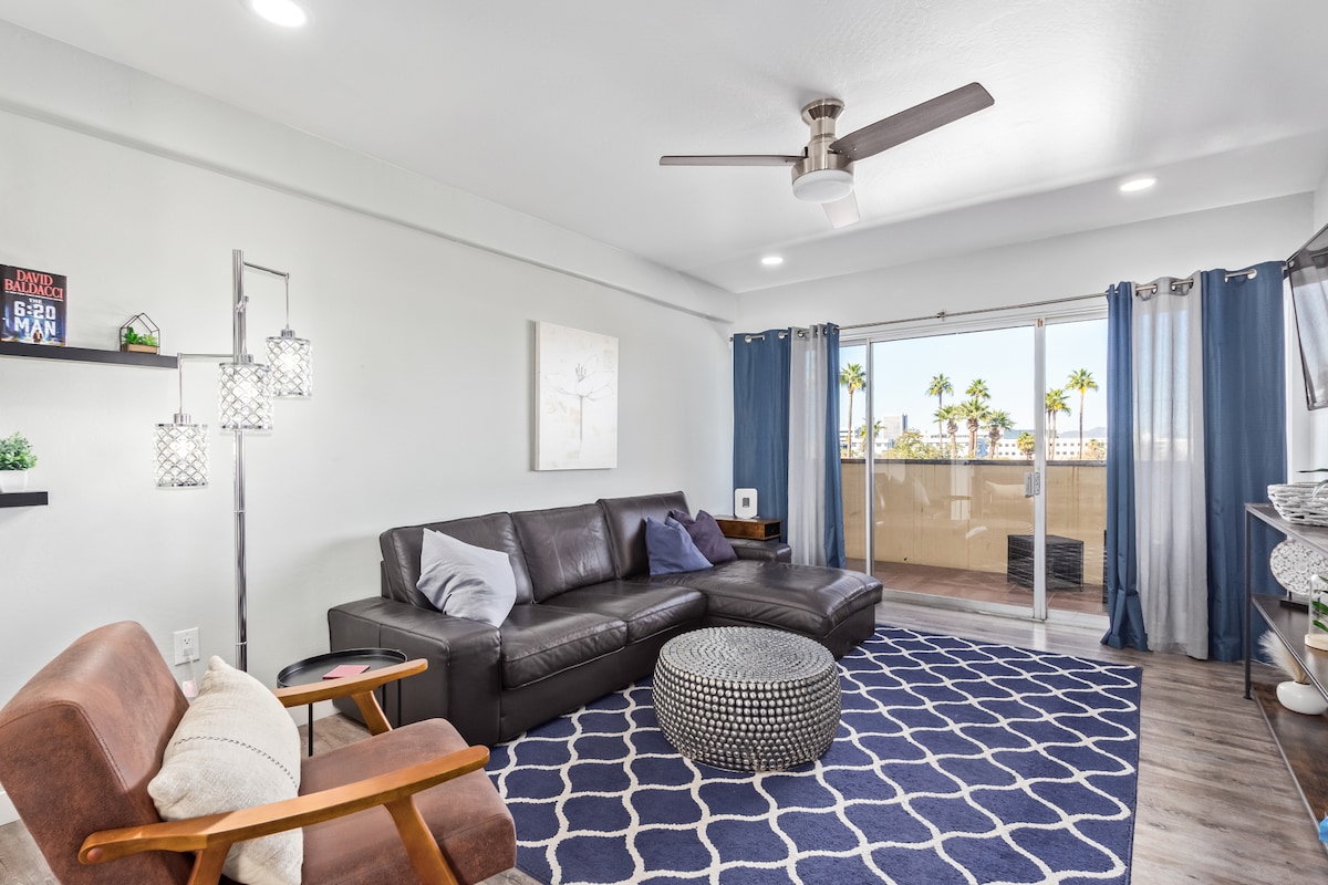 The Space: Welcome to Palm Paradise, your relaxing retreat in the heart of Old Town Scottsdale. renovated in October 2024, this condo blends stylish desert-boho design with all the comforts of home, creating a space that is both beautiful and functional. Unwind on the cozy green corduroy sectional, perfect for napping, or step out onto the private balcony to witness spectacular sunset views over Camelback Mountain. Step into the tranquil bedroom with a king-sized bed and high quality linens.