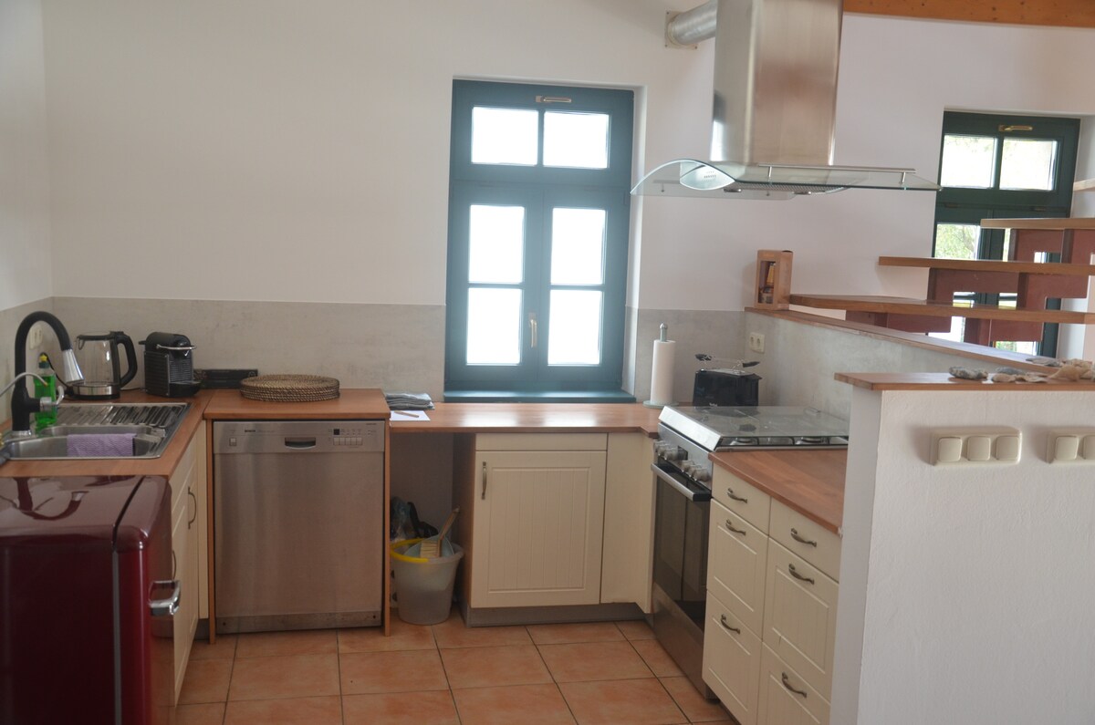 HexenburgbeiDresden! Welcome to our brightest and architecturally stunning penthouse apartment. With 19 windows and two spacious skylights, you’ll enjoy an exceptional living environment here, complete with breathtaking views to the south and east—right out onto the greenery and the show jumping arena, where you can watch the horses at work.