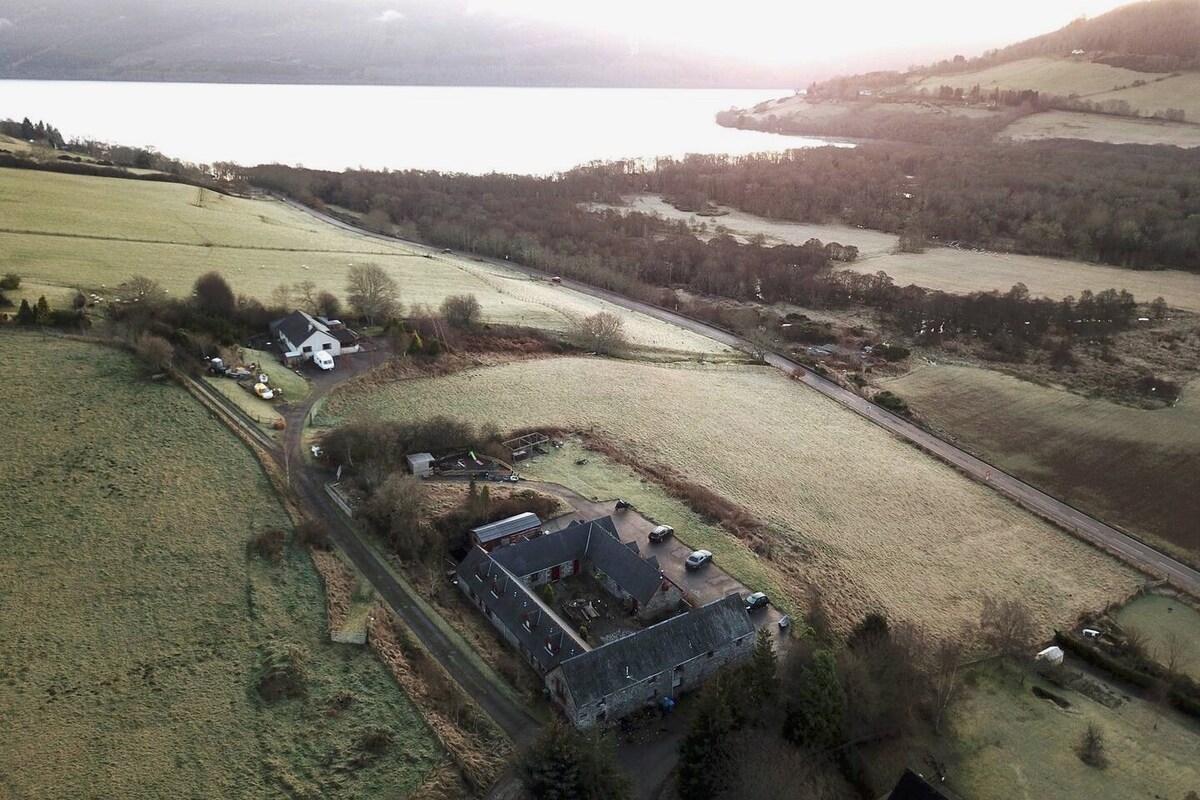 Urquhart Bay Barn, situated at the Urquhart Bay Viewpoint, is a charming and spacious self-catering renovation, with two bedrooms (one can be either two single beds or a king size bed), completed to a very high standard, with stunning views across Loch Ness and Glen Urquhart from the dining area window and gardens. We are just a few minutes walk from the iconic Urquhart Castle. The Barn itself is built with stone taken from Urquhart Castle in the late 1800s.