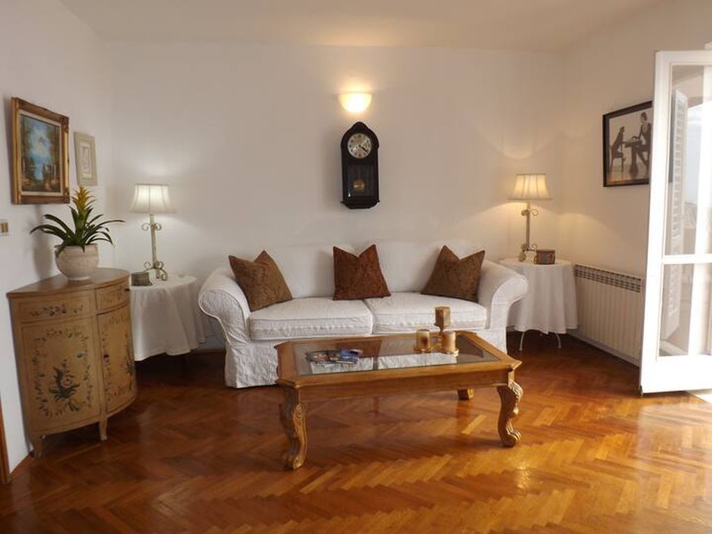 Ground floor, 2 bedrooms with 2 bathrooms 100 m2 apartment, situated in a beautiful traditional Villa from 1903. Located 10 min easy walk to the Pile gate, main entrance to the Old City without stairs. Consist 100 m2 of the apartment, 60m2 garden with outdoor barbecue (in use) and extraordinary terrace with a beautiful view of the open sea and residential Boninovo area. Make breakfast or enjoy sunset view with glass of Prossecco ! PARKING with surcharge 4 min walking distance from house.