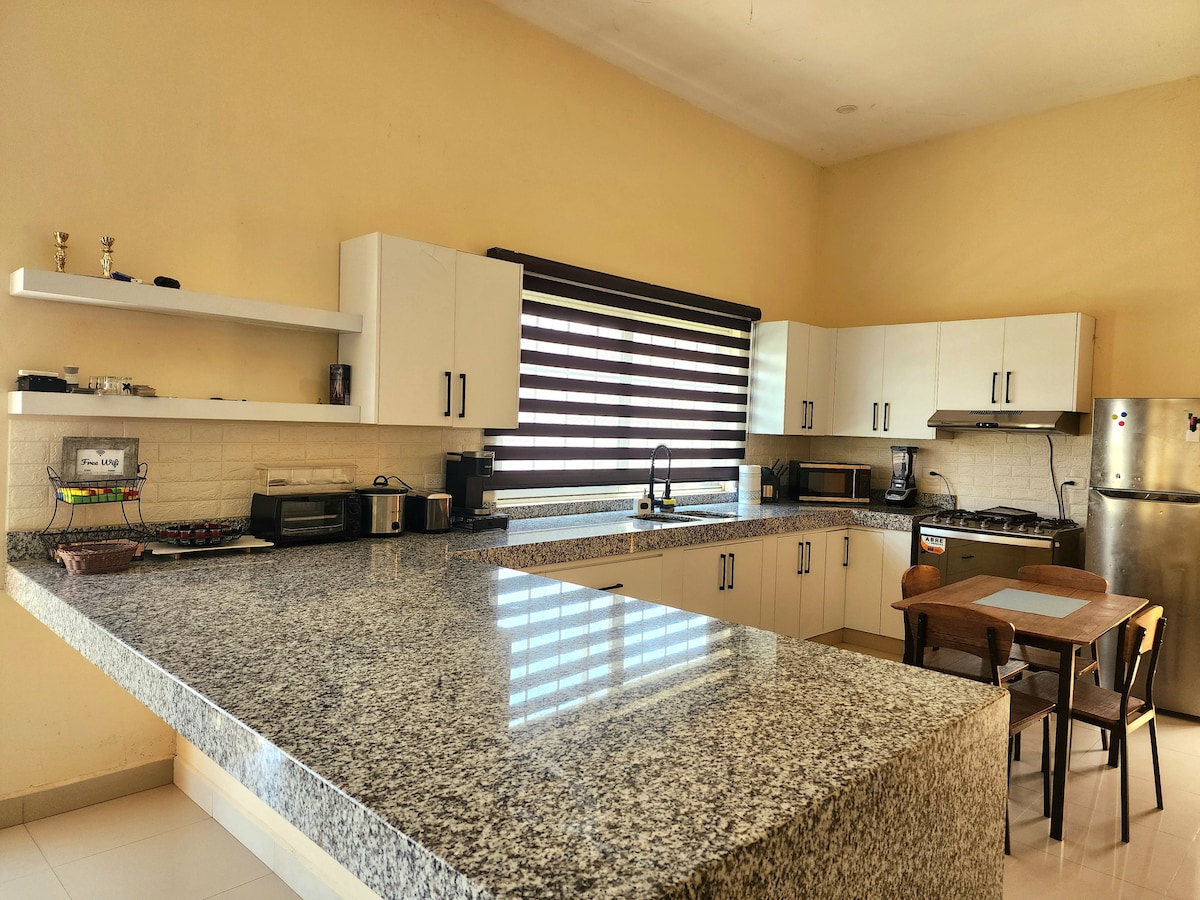 Relax in our Mayan neon temazcal, where you can do your therapies, meditation, relaxation and yoga. Our place has 4 rooms, +16 beds, shower, ping pong table, air conditioning, internet and telephone signal and jacuzzi. You can also enjoy our sunken fire pit with capacity for +20 people seated, an outdoor grill as well as a wood-burning stove. We have a refrigerator, tables, breakfast bar, place to wash dishes, quiet and safe