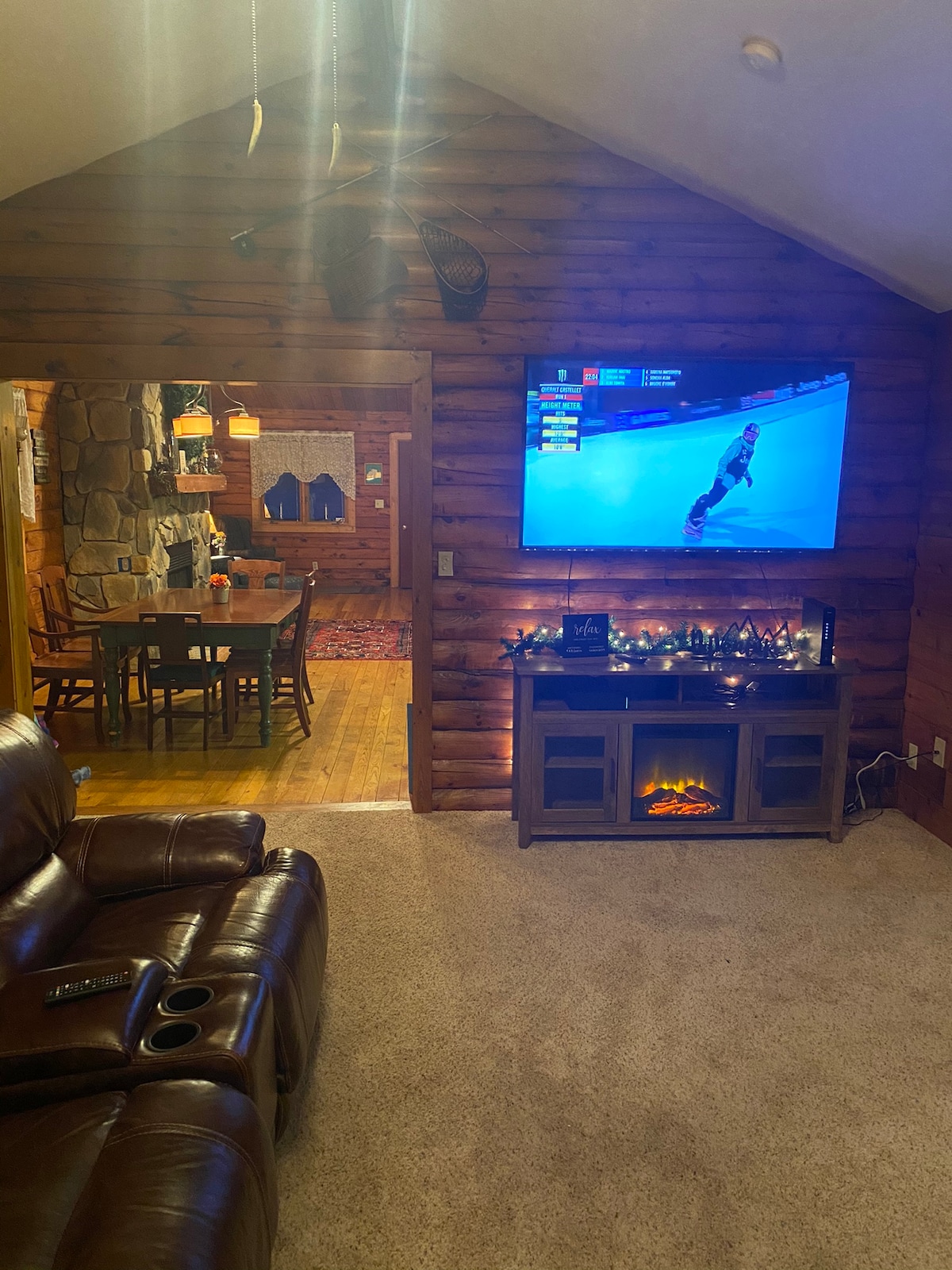 Large Lodge settled on 3 acres w/ a beautiful Stream Running through the woods. This Lodge is perfect for a relaxing mountain vacation. Large enough for the whole family to spread out & have fun. Snuggle up by the fireplace, enjoy a game of pool, head outside, relax in the hot tub, or go fishing! This place has got something for everyone. It’s right off Rt. 40. Minutes from Nemacolin, Ohiopyle, Fort Necessity & plenty of restaurants nearby. 3beds 2 baths (2 queen 1 full) 1 sleeper sofa.