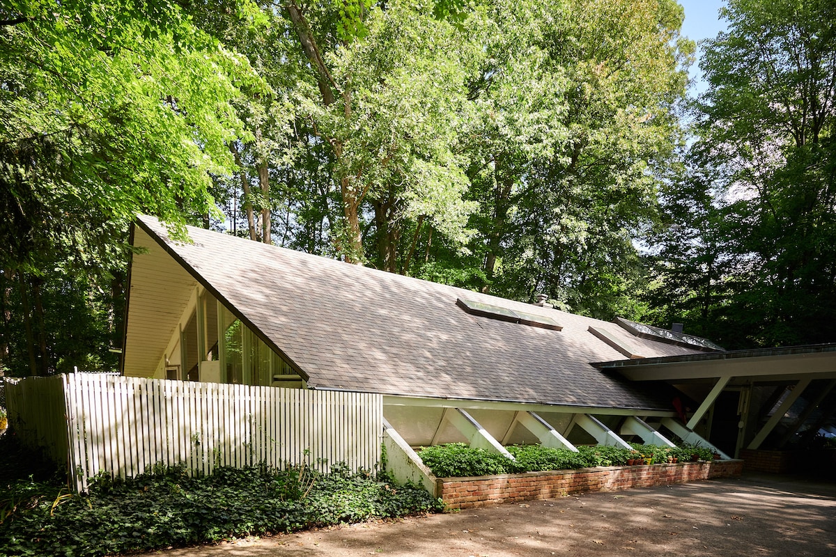Mid Century Modern A- Frame nestled in the woods