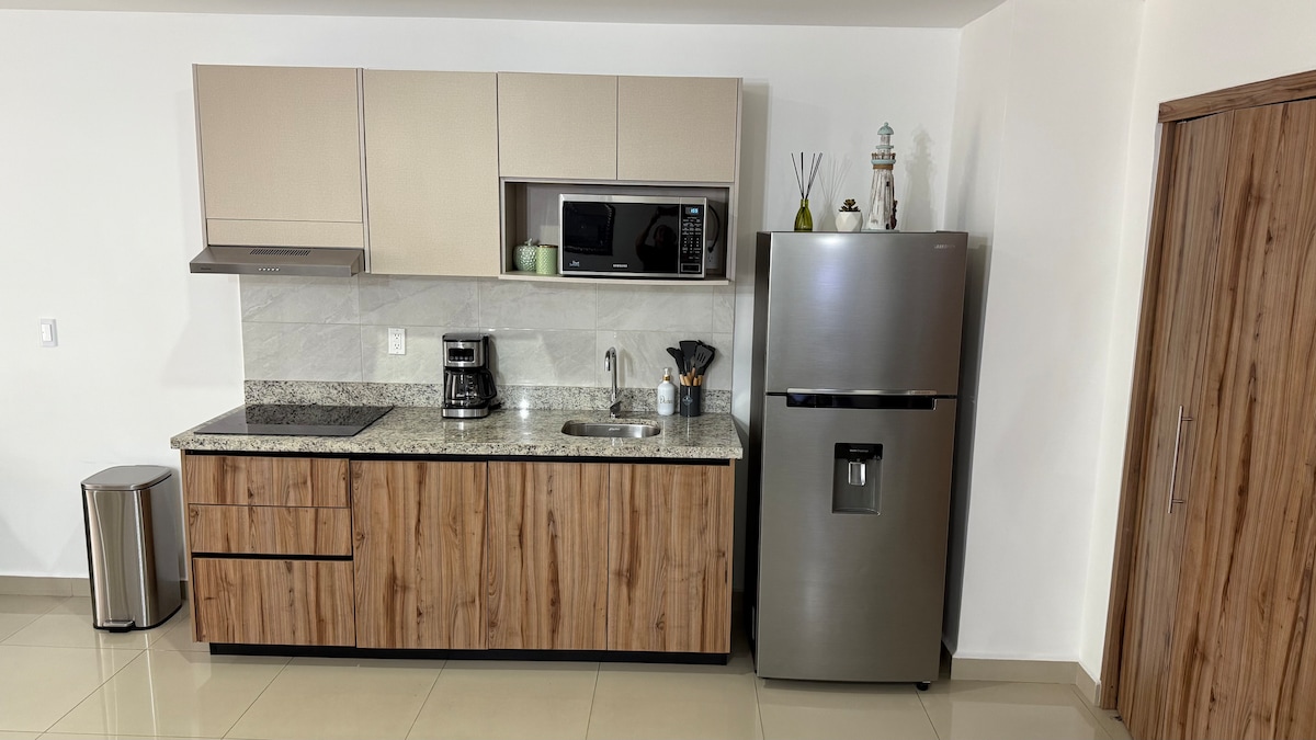 Kick back and relax in this calm, stylish space. A cozy one-bedroom accommodation for two people. It has a Smart TV with Netflix, Disney +, Wi-Fi, free parking, 24/7 hot water, kitchen utensils, refrigerator, gas grill, microwave, drinking water, in a private residential area with 24-hour surveillance. On the third floor in one of the best located and connected areas of the city. Next to supermarkets, restaurants, and shopping malls.