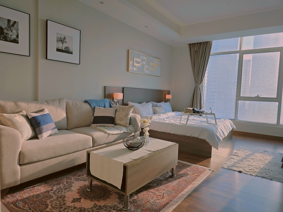 Discover the epitome of convenience and luxury in our studio apartment, perched on the 29th floor in the prestigious Seef area, a prime location surrounded by Bahrain’s finest malls. Built in 2020, this modern sanctuary boasts panoramic views that capture the essence of Bahrain. Enjoy easy access to the best shopping experiences just moments away. Our building offers top-notch amenities, including inviting pools and a fully equipped gym.