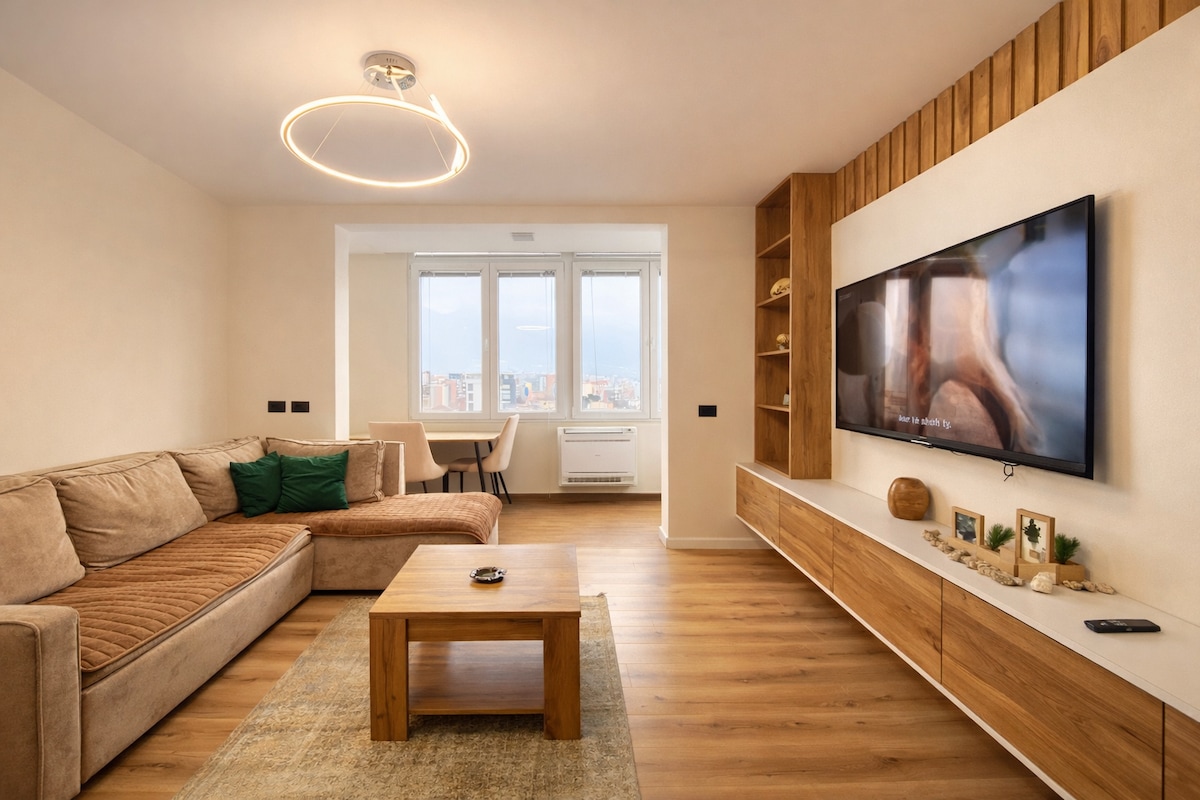 Enjoy a comfortable and quiet stay in one of Tirana’s most desirable and attractive neighborhoods – Komuna e Parisit. This modern 1-bedroom apartment with a balcony is perfect for couples, solo travelers or business guests, offering easy access to the Artificial Lake, Bllok area and city center. ✔ Self check-in with key box for maximum flexibility; ✔ Ideal for stays of 2–7 nights; Whether you’re visiting Tirana for work or leisure, this apartment offers comfort, privacy and a great location.