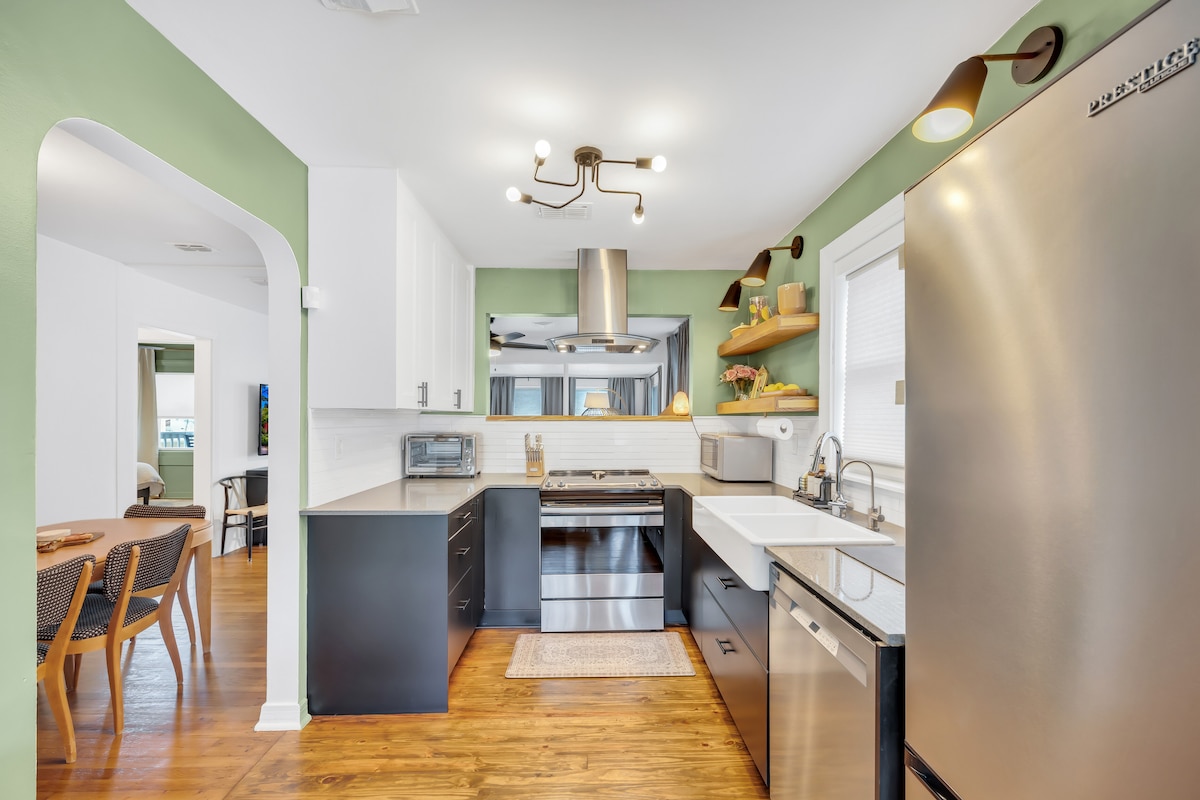 Escape to our stylish jungle-themed retreat nestled right in the heart of Jacksonville in Murray Hill. Immerse yourself in a tropical paradise without ever leaving the city. Whether you're seeking a romantic getaway or an adventurous family vacation, the Hill Hacienda is the perfect oasis for your next stay. ⭐️ message us about our early check in and late check out options! 🐆🐆