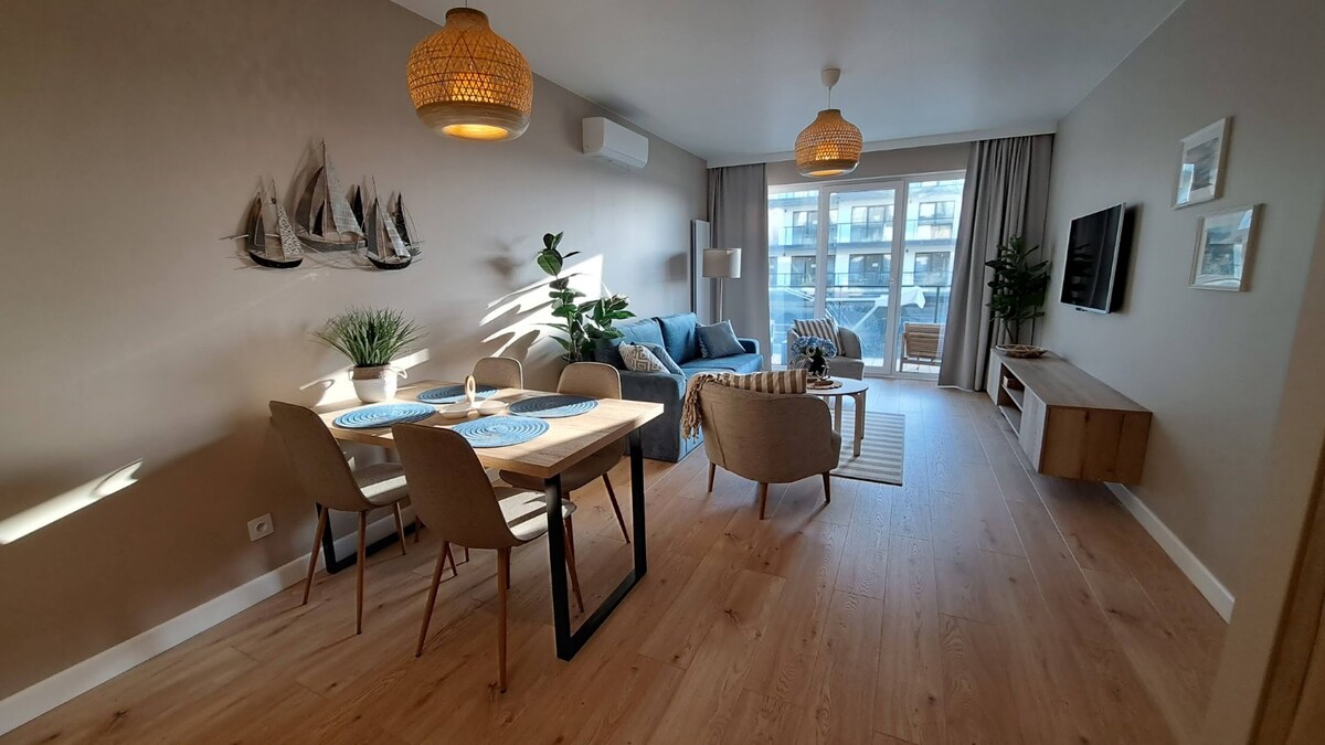 Luxurious 7-person apartment Marina 22 with direct view of the river. Located between the Wrzosowska Bay and the Baltic Sea. The "Dziwnów Peninsula" housing estate is an ideal place for a summer family holiday. Passing yachts and unique nature are assets that are hard to pass by indifferently. The estate is distinguished by low and intimate buildings. Unique nature is an asset that is hard to ignore. See you at the seaside!
