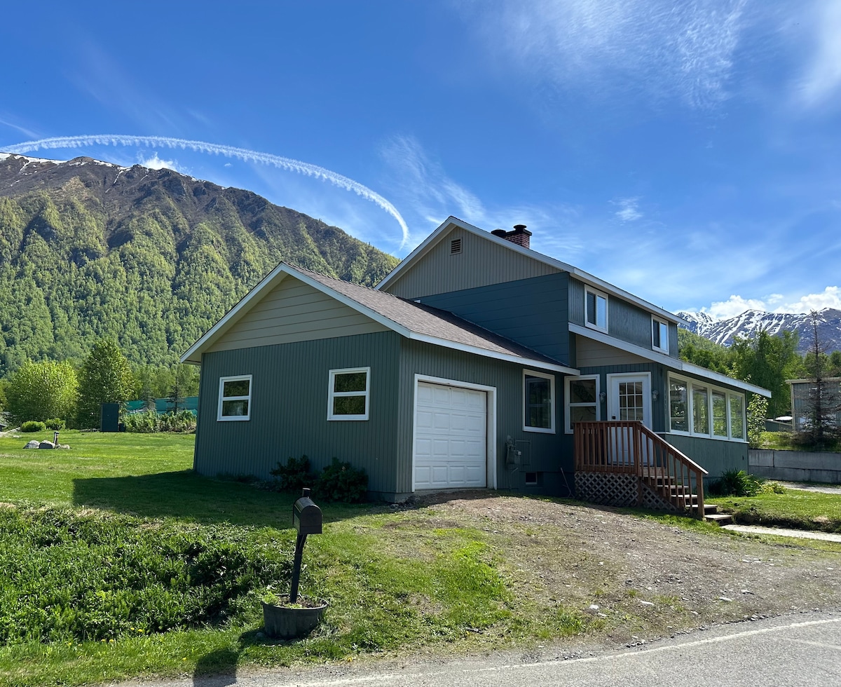 We aim for you to feel as though you’re visiting family. The property features a spacious yard with a swing set & sandbox for kids. Pat may greet you on arrival & is always happy to share his love of Alaska & local insights. Guests enjoy fast Wi-Fi, convenient laundry access, & the chance to see local wildlife right outside the back door — moose (often with calves), ravens, Steller’s jays, squirrels, & on rare occasions, a bear. We also provide plenty of resources to help you plan your stay.