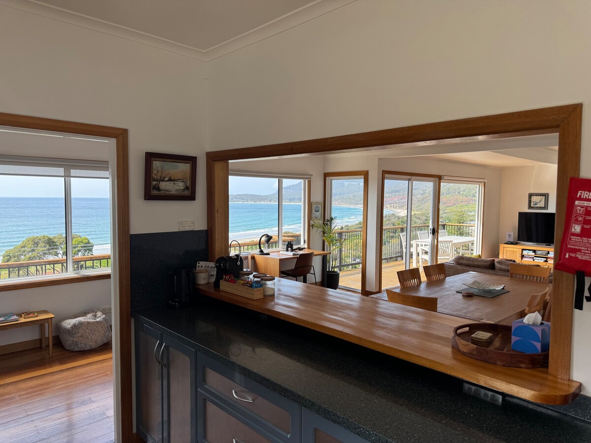 The Old Jetty Joint welcomes you with a cosy 1970's shack vibe. This classic Tasmanian shack has been thoughtfully renovated to take full advantage of its spectacular location – perched overlooking Pirates Bay, only 150m from the beach. With one of Tasmania’s most stunning bays just across the road, your gaze will skip endlessly between the swell lines and the dramatic coastline beyond. Pack your surfboard or whittle the hours away beachcombing the pristine white sands. @theoldjettyjoint