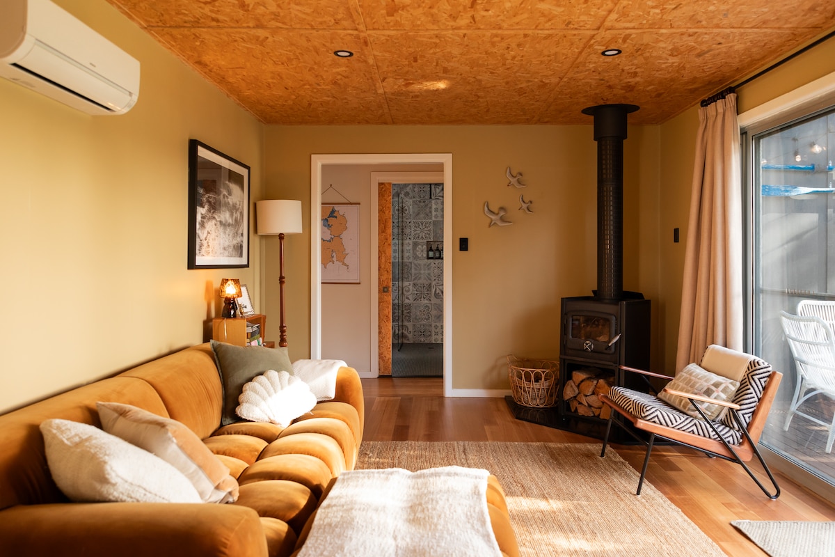 Escape to Dune Shack, a nostalgic 1970s Tasmanian retreat tucked behind the dune at White Beach. Relax in a secluded paradise with private beach access, hot stone sauna, and the soothing sound of waves just steps away. Perfect for couples or small groups, the shack blends 70s charm with modern comforts - from the cosy Nectre fireplace to a fully equipped kitchen and vibrant, relaxing interiors. The shack is an ideal base for exploring some of Tasmania’s most iconic bushwalks and beaches.