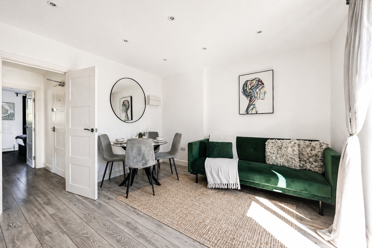 Experience comfort in this modern, fully furnished Ealing Broadway apartment with unbeatable transport links. Just steps from the Elizabeth Line and Tube, reach Central London or Heathrow Airport in minutes. Surrounded by cafรฉs, shops, and restaurants, itโs ideal for business or leisure. Book your stay for the perfect blend of comfort, convenience, and location!!
