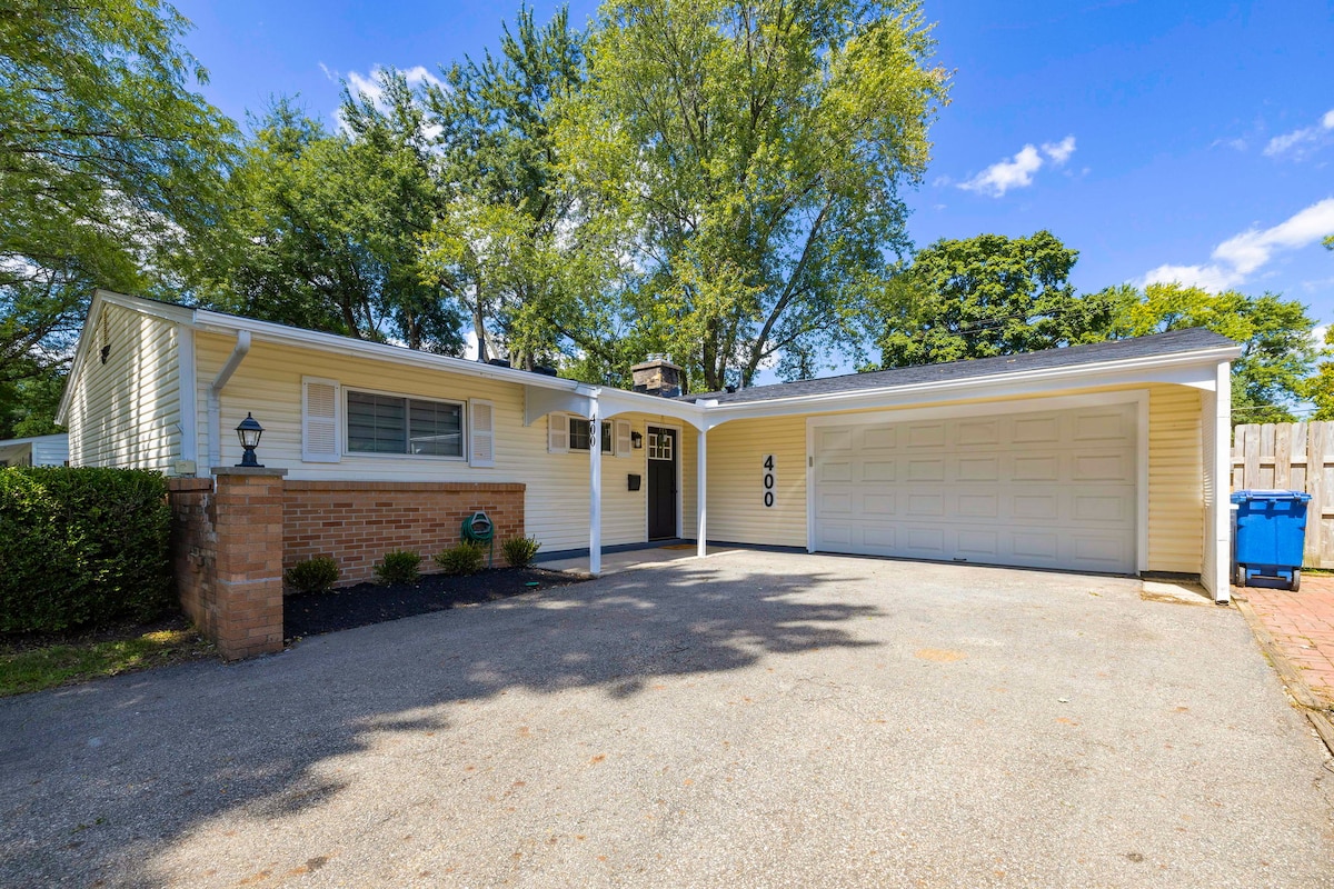 The Bexley Abode is in a prime spot: mins from attractions & highways but tucked in a quaint part of Cbus. It is home-y and conducive to a family or solo visitor. My husband & I remodeled and designed it with thought and sentiment. Highlights: ranch, open layout, cozy couch w/ 50" TV that swivels towards kitchen, gas fireplace, natural light, simple modern design finishes, new appliances, Keurig, hotel- style master bath w/ heated floor, kids room w/ toys/games, USB ports, WiFi, private parking