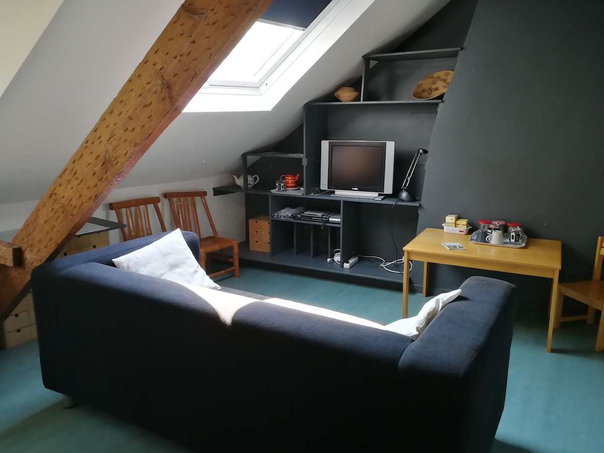 The apartment is on the first floor, genre loft with 1 separate bedroom. Ideal for exploring our beautiful region with your family, via the Flemish Ardennes cycling network or other beautiful routes. If you prefer to walk, you can also get your heart's content here. Within a radius of 3 km, you will encounter 3 castles (Leeuwergem,Grotenberge, Zottegem) Or do you want a base to visit our beautiful Flemish cities such as Oudenaarde, Ghent. Always inform yourself about the applicable corona measures!