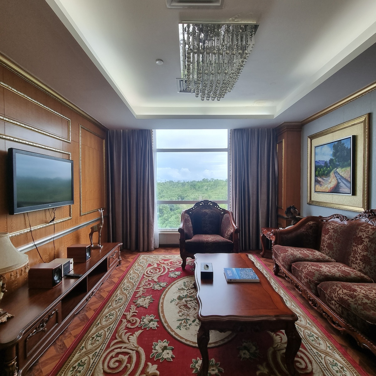 Welcome to The First Class Suite in the Heart of Miri City. Stay in an upscale, centrally located retreat designed for luxury, leisure, and business. Steps from, dining, shopping, entertainment - all within walking distance without ever needing to leave the building. Unwind with plush beds, hot tub, sauna, fast Wi-Fi, daily housekeeping, a swimming pool, and a fully equipped gym where refined comfort meets downtown energy and authentic local charm.