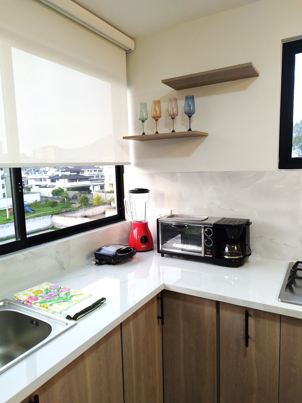 Welcome to our wonderful luxury suite on the 20th floor of a new and avant-garde building! This high-altitude oasis is designed to provide you with first-class amenities (some free to use and others by reservation). For grill lovers, we have a BBQ area with a 360 view of Quito, and those traveling with their pets will be delighted to know that we are pet-friendly. We also have a snack bar with various products and drinks for an additional payment