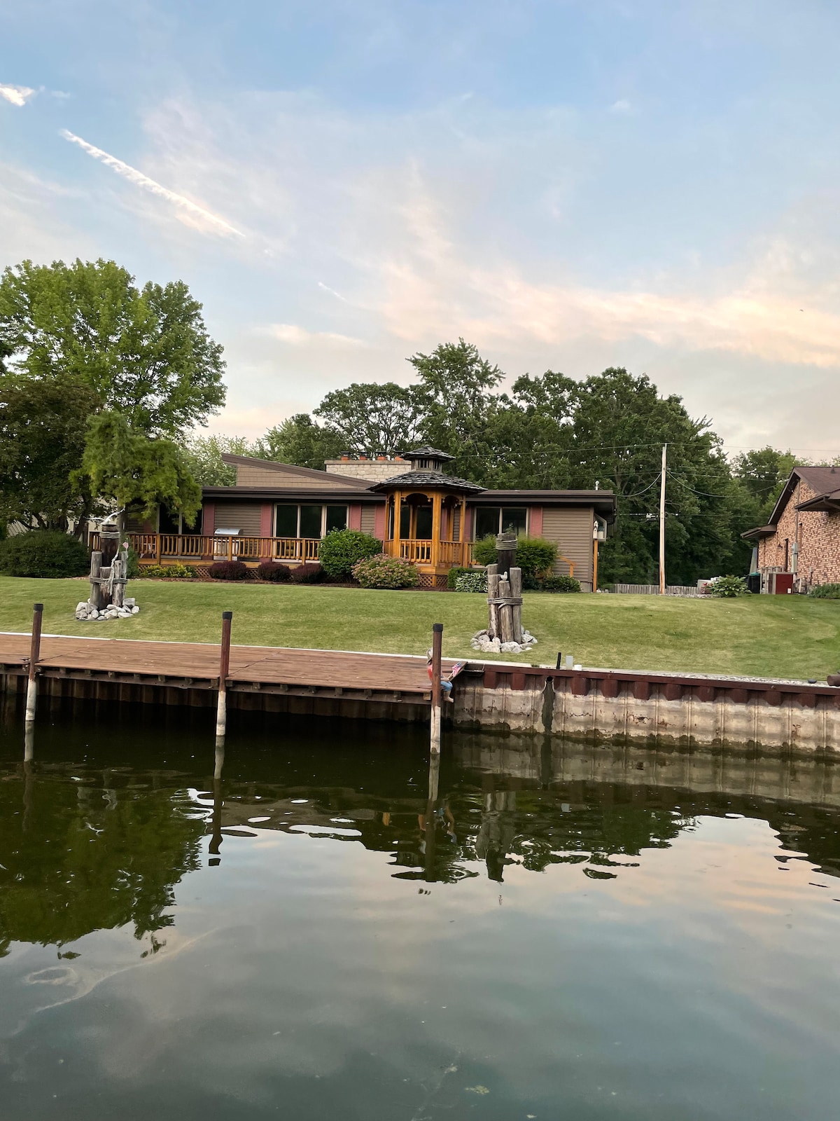 Enjoy a beautiful cozy new riverfront cottage. Enjoy a breathtaking landscape like no other! In May 2020, the Edenville dam on Wixom lake failed, draining the lake and turning it back into the river it was 95 years ago. Our cozy cottage now sits on hundreds of acres of ancient trees and emerging forest on a dry lake bottom with a picturesque river running through it. You & your family/friends will love your stay in this cozy upgraded cottage with an enormous deck & sunset views like no other.