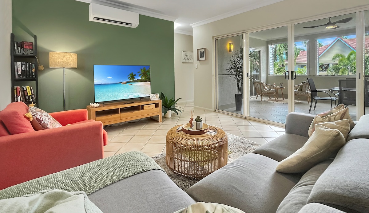 🌴Welcome to The Green Place, a peaceful 2-bedroom retreat with a private balcony overlooking the botanical gardens’ treetop canopy. Set within a tropical resort complex, this spacious apartment feels private, calm and made for slowing down. 🏡Enjoy free Wi-Fi, air-con, 4 pools, tennis court, workout space, full kitchen, laundry and undercover parking. Flexible bedding available: 🛏️ Bedroom: 1 king or 2 singles 🛏️ Second bedroom: 1 king