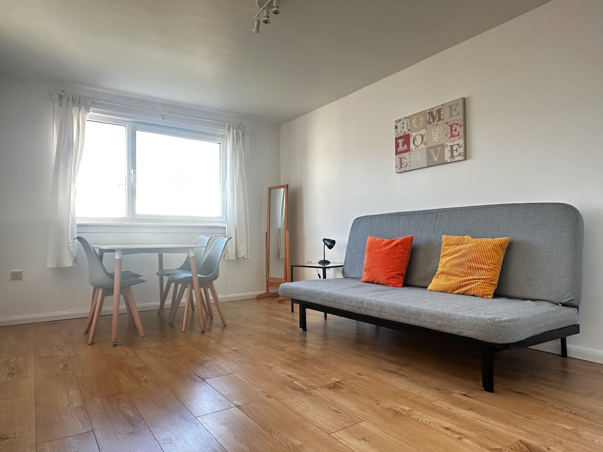 Stunning, newly refurbished modern 1 bedroom flat. Bus stop in front of the building. Direct buses will take you to the city centre in less than 15mins. Convenience stores are two blocks away. Free residents parking on site. Fast internet and 65" TV unit in the open plan living room.Full privacy with soundproof walls.Fully functioning kitchen and washing machine available.Host is local to the area and and can answer any questions you have. Seaside and Royal Botanic Garden within walking distance