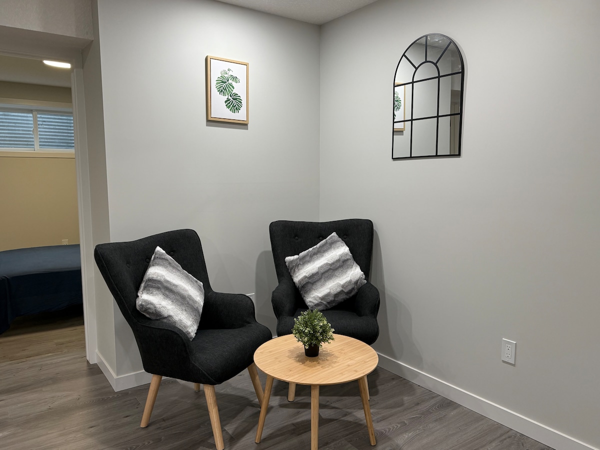 Beautiful memories await you at our brand New executive, spotless and spacious 2-bedroom legal basement suite. Here you will have 5-star sleeping experience at a 1-star price. Step into our modern private entrance basement fully equipped and tastefully furnished to meet all your needs. Our suite has soundproofing which reduces noise from the main floor, but you may still hear sounds occasionally. The bedrooms have Queen bed and Full size bed and love seat in the living room. Self check service