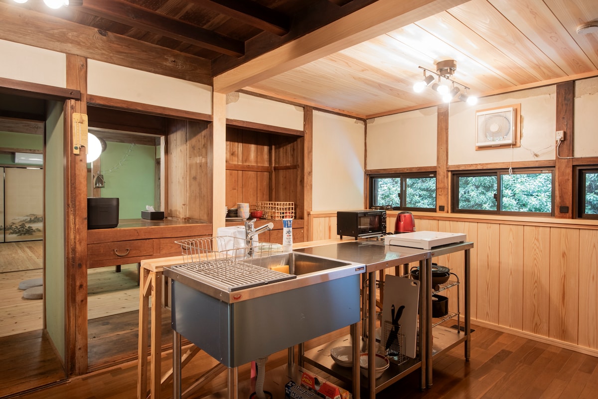This is a private rental accommodation located in the central western part of Kochi Prefecture, limited to one group per day. The basic price is for 4 adults, and up to 2 children under elementary school age are free of charge on the premise that they sleep with an adult. Perfect for families, couples, and friends. We renovated a 40-year-old traditional house, leaving the old-fashioned windows and beams intact. It's a perfect size 2LDK, and you can relax like you're at home. Relax your mind and body in the Hinoki bath and sun room overlooking the countryside. We also provide additive-free and environmentally friendly amenities. About 40 minutes by car from Kochi Airport. It is also within walking distance of the nearest station. It also has good access to the miraculous clear waters of the Niyodo River.