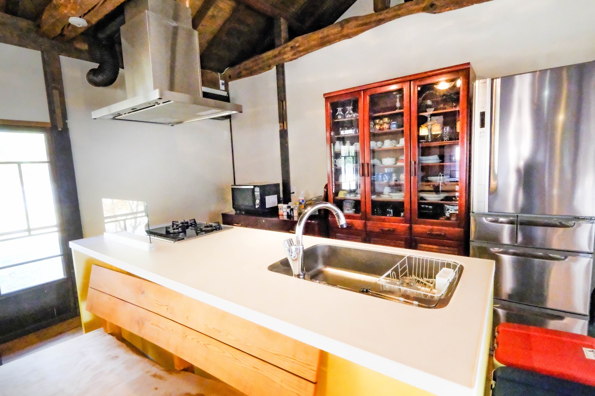 ※ There are no bears in this area. You can stay with peace of mind. A house in the woods. In a magnificent old house at the end of a Ghibli-like forest road, you can enjoy BBQs, campfires, Goemon baths, and other natural activities that can only be enjoyed in the mountains. There are no street lights, and at night you can see the starry sky. Spending time feeling the mountains with your whole body, which you can see in each season, is an irreplaceable pleasure. It is an old-fashioned house with a magnificent main pillar, earthen walls, and built-in storage, but the first floor is completely covered with cedar boards, giving it a new feel. The water area features a newly built island kitchen and a large wash basin. The bath is a Goemon bath that uses both wood and gas, so you can cook with wood or use hot water. Outside the house, there is a friendly sign cat named Aosuke, who will come up to you if you are outside. It is located about 15 minutes by car from the Ishikari Mountain ropeway, making it easy to get to the mountains.