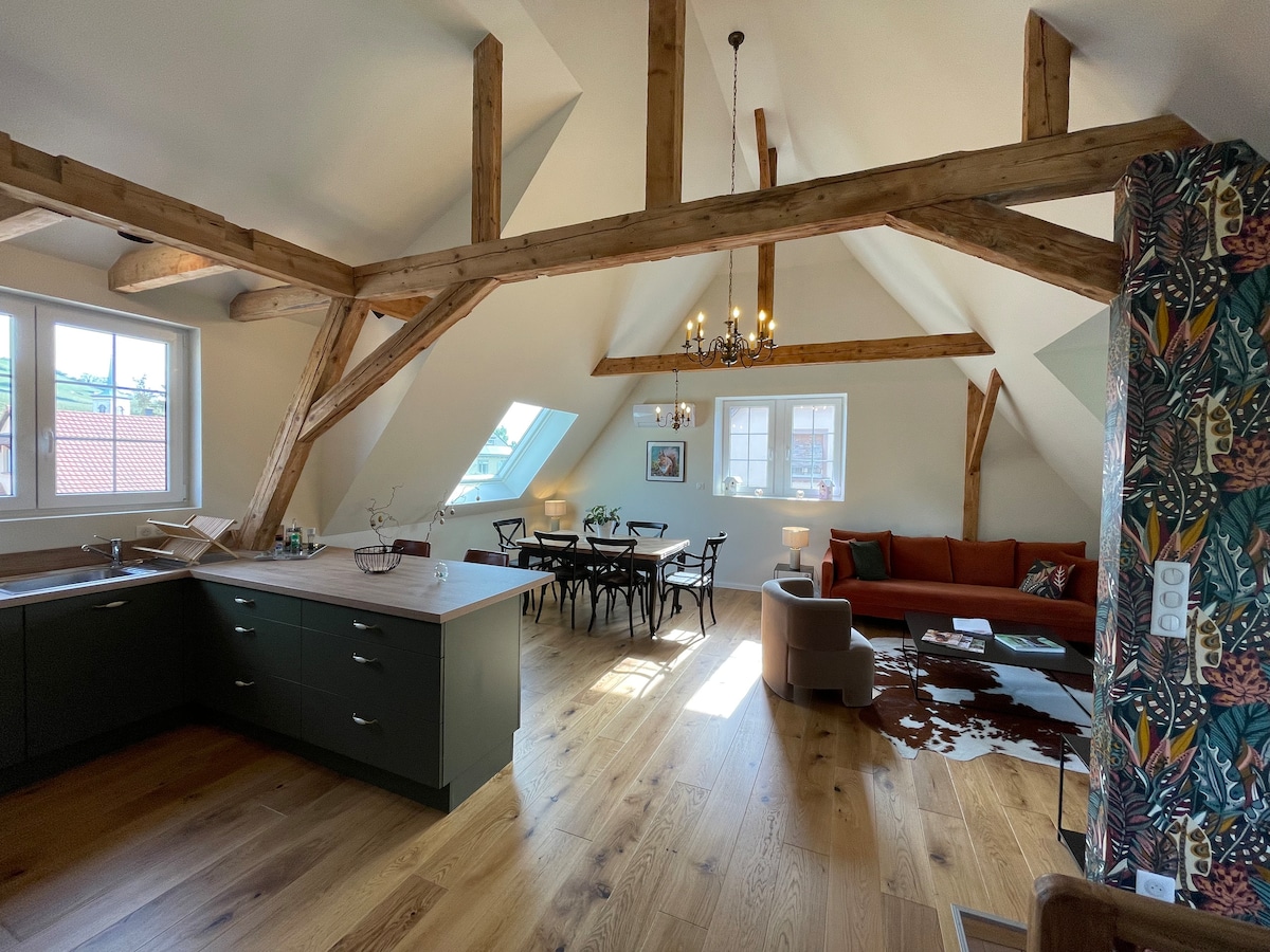 In the heart of the Alsace Wine Route, come and recharge your batteries in our quiet and fully equipped studio. Ideally located at the foot of Moenchberg Hill, one of the 51 Alsatian Grands Crus, this cozy accommodation will allow you to discover the castles but also all the specialties of our beautiful region. The apartment, renovated in 2024, blends tradition with modernity.