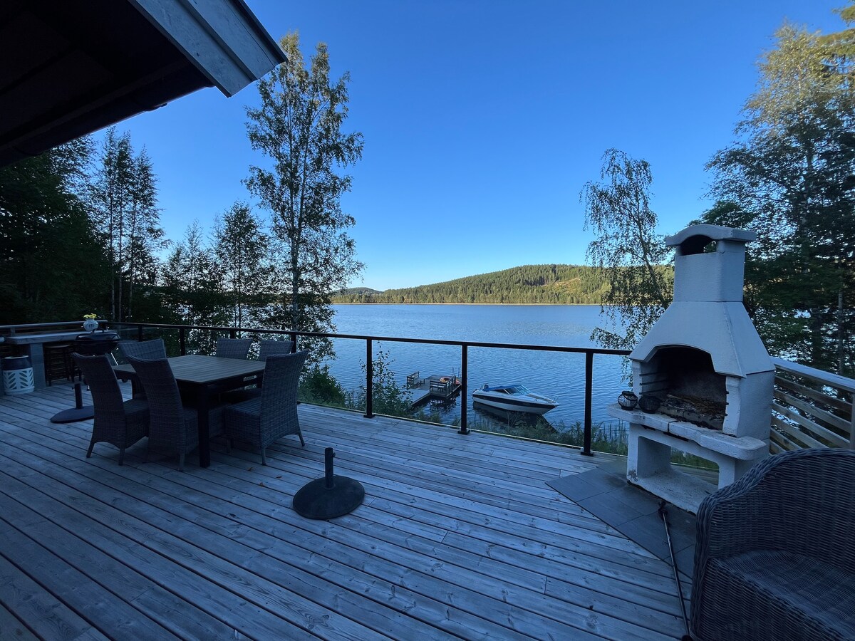Recharge your batteries in rustic and charming surroundings right by the water, which really embraces the concept of "hygge". Enjoy the peace and quiet with friends or family. Winter with fireplace and good meals. The summer in scenic hiking areas that are full of mushrooms and berries. Spend Christmas with us. We arrange Christmas trees, ready for decoration. The main cabin has 3 bedrooms with 7 beds, you can accommodate 8 by using the sofa. The master bedroom has a ceiling height of 4m and the bathroom has a full light ceiling. Welcome!