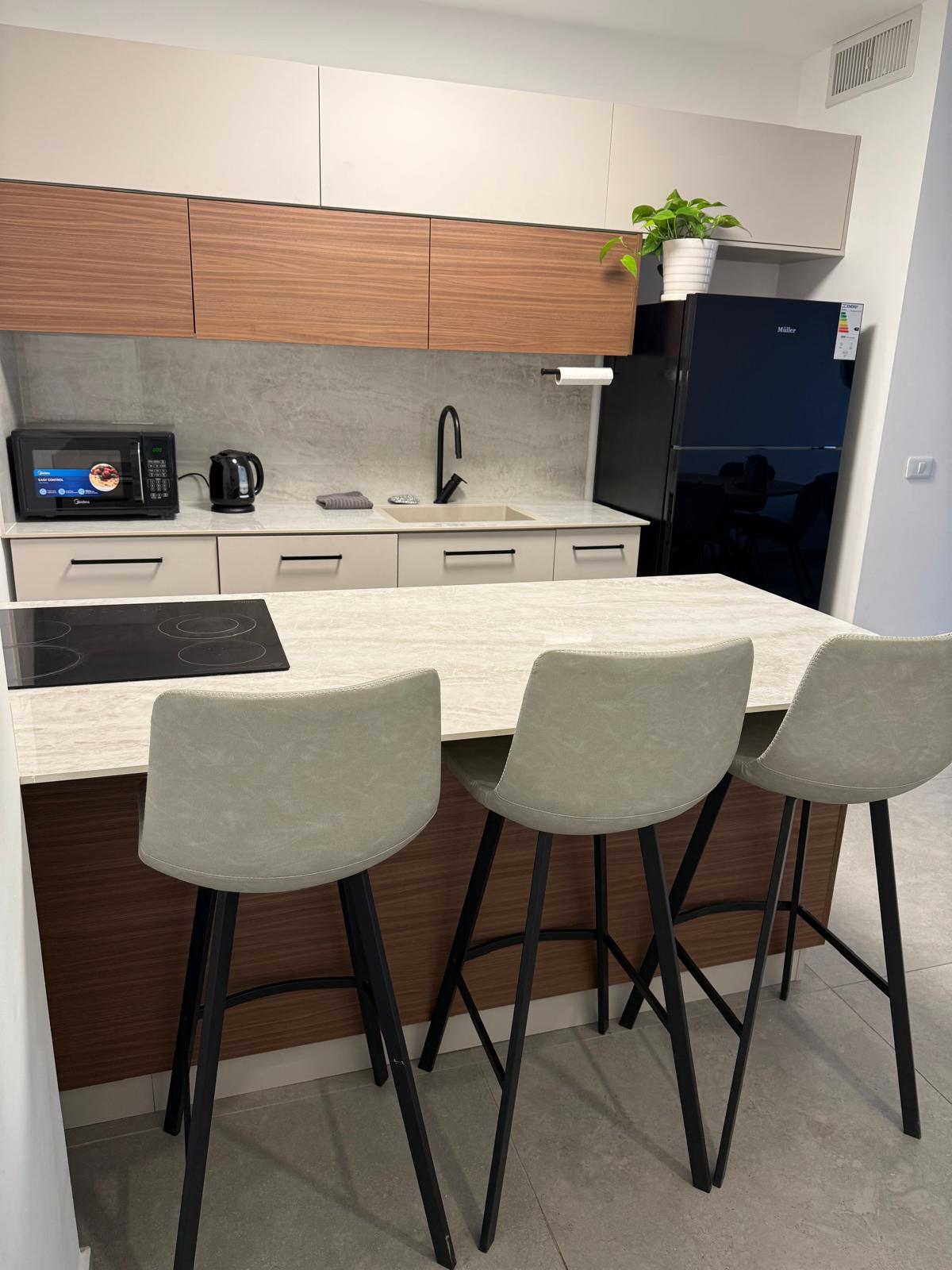 large apartment with stunning sea views. Suitable for families. private roof with a professional BBQ and seating areas. designed and beautiful, fully equipped. Located in a prestigious location in the city, quiet and peaceful. • Large and fully equipped apartment for a couple and family vacation for up to 6 people • Wide view terrace with seating area facing the spectacular views of the sea • Huge private roof with professional BBQ and seating area, stunning sea views. •