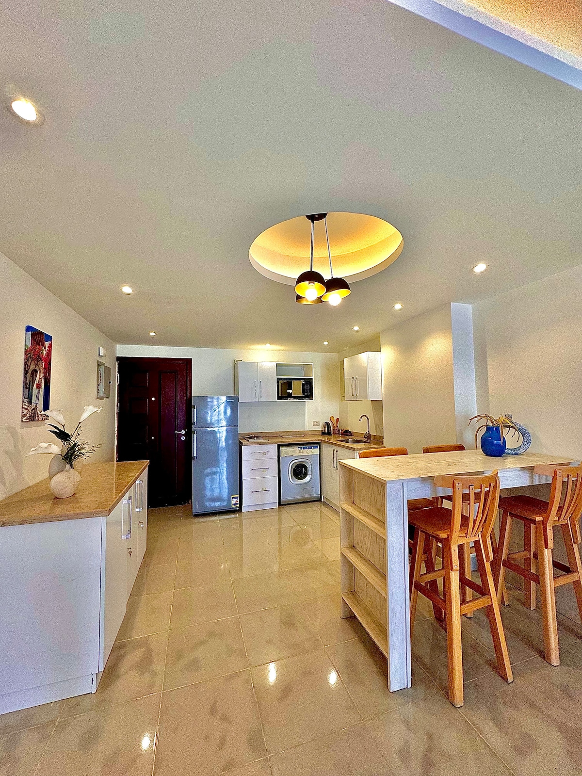 Enjoy this unique serene and tranquil getaway, Where the sun is always shining and the mood is always Good ,this is a 2 bedroom apartment that is equipped with everything you may need for short or long stays. you're welcome to enjoy the views, the sun ,the sand and everything this place has to offer. there's superspeed wifi, a full kitchen, tv, sound system and more, its located in the center of marina 7, there's supermarkets, restaurants and everything you need less than 10 minutes away 💕