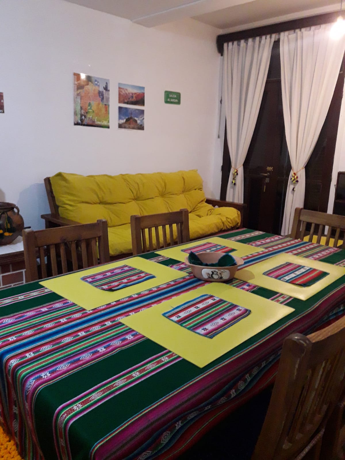 Monoambiente estilo refugio de campo,rodeado de naturaleza quebradeña, para 4 pnas. Sábanas Toallas Frazadas Buena calefacción (split Carrier). Agua caliente las 24 hs. Sector desayunador: Heladera.Anafe para calentar(no cocinar). Pava eléctrica. Vajilla. Wifi Estacionamiento No techado a la par del Monoambiente. No incluye desayuno. No se admiten mascotas. A 800 mts del centro zona del campo. Lugar de relax y conexión con la naturaleza.Espacio seguro.
