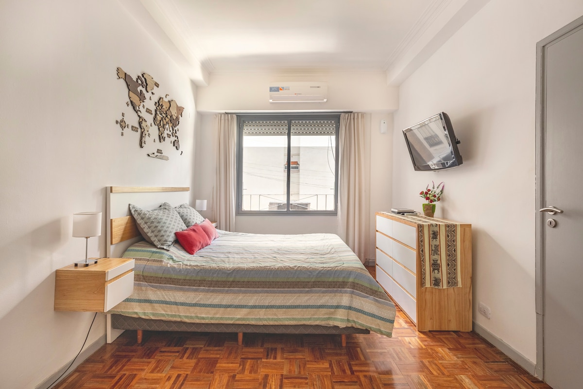 Welcome to our cozy studio apartment in Junín y Santa Fe, Recoleta, Buenos Aires. It features a queen bed, sofa bed, full bathroom, small fully equipped kitchen, dining area, plenty of natural light, and air conditioning. For safety, there are smoke and carbon monoxide detectors. Enjoy the vibrant neighborhood with trendy shops and restaurants. As your hosts, we're here to make your stay memorable. Book now and experience Buenos Aires from our home away from home!