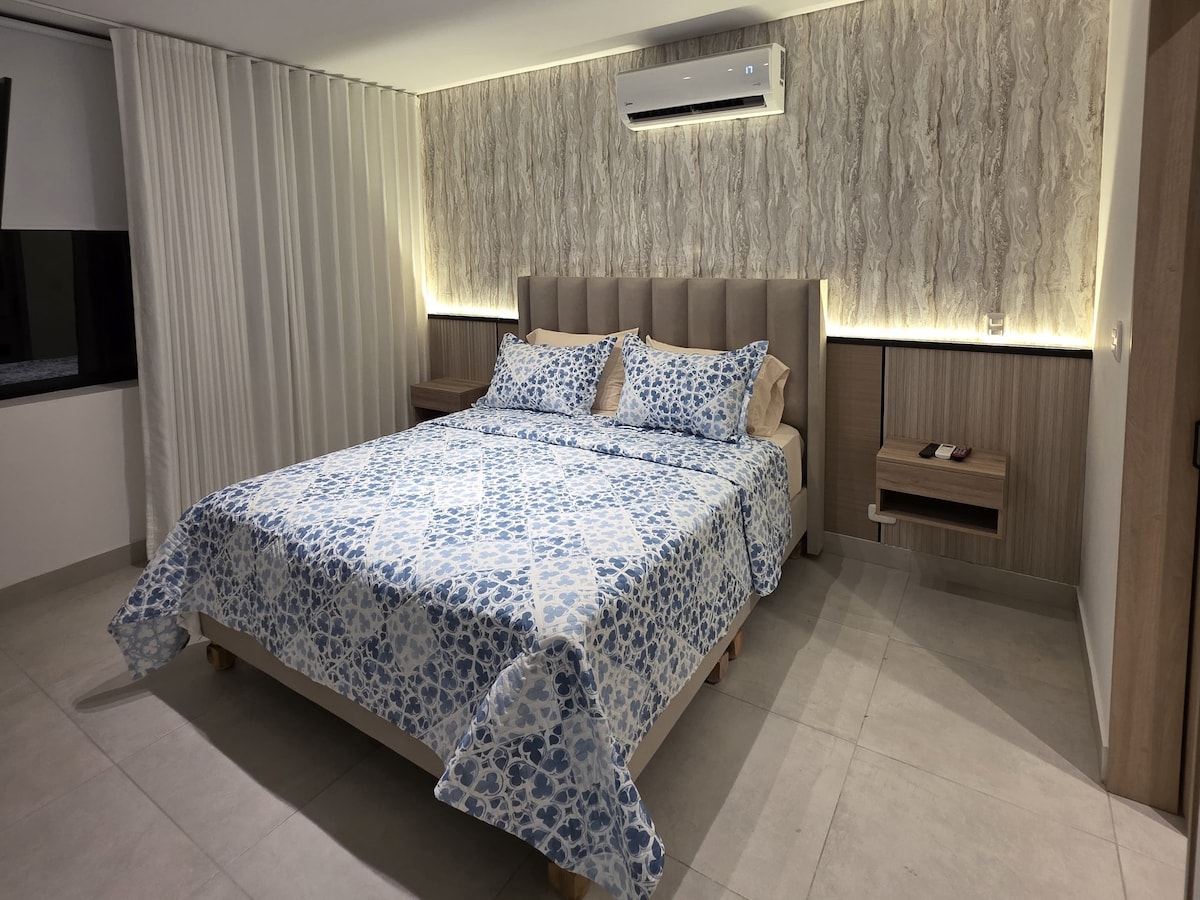 Modern ApartaSuite in the heart of Cali – Comfort. Enjoy a unique experience with a strategic location in downtown Cali. Perfect for travelers looking for comfort, tranquility, and proximity to everything the city has to offer. Wet area with Jacuzzi, ideal for relaxing after a day of sightseeing or work. You're within walking distance of green areas, main avenues, public transportation stations, supermarkets, restaurants, and bars. Enjoy a great experience!