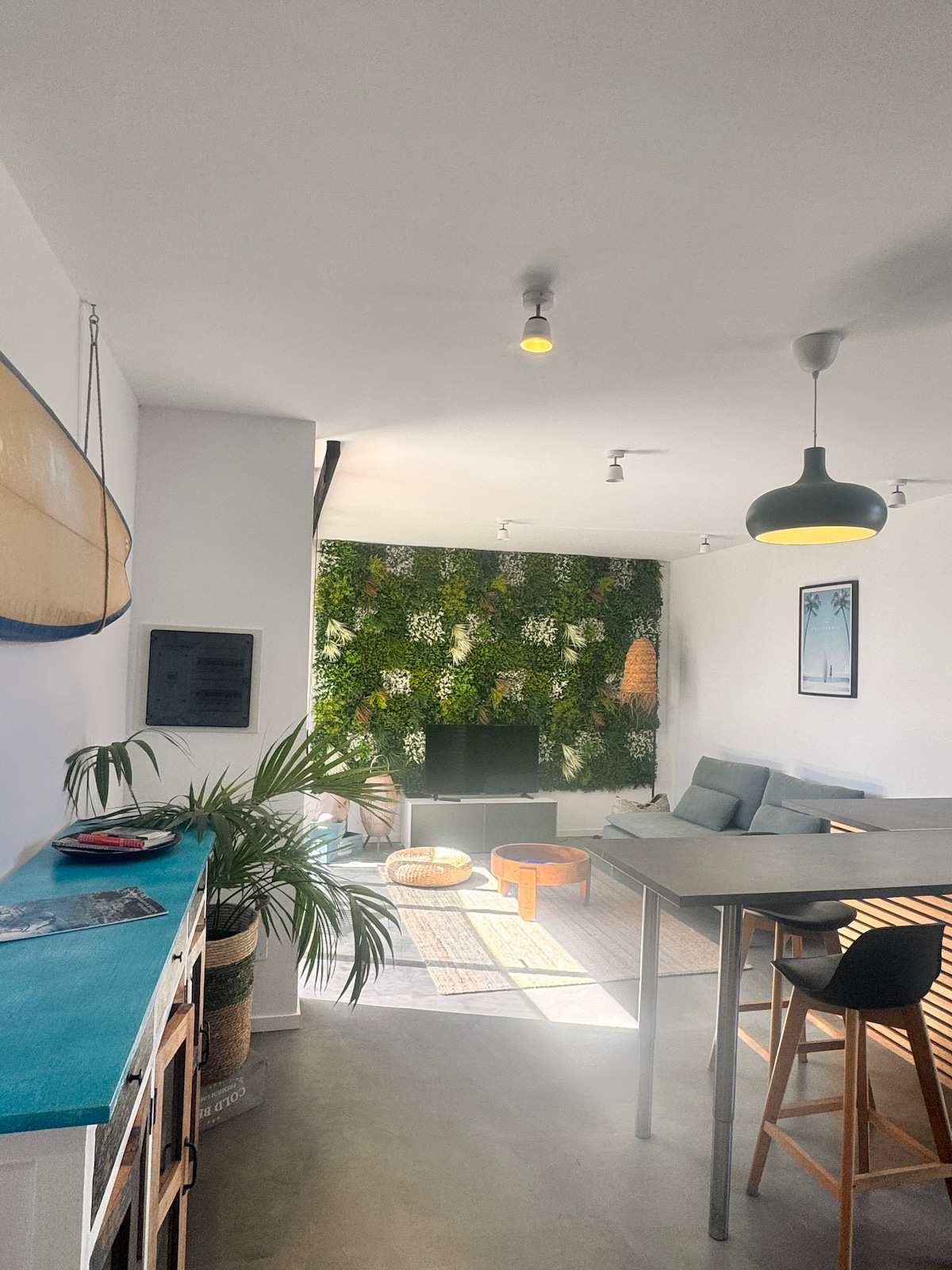CASA GATTI, a design work in Fuerteventura, fuses sophistication with simplicity. The interior, built with local materials, reflects a unique harmony. The mini-pool offers panoramic views of Lanzarote and the region's impressive volcanoes. Strategically located between Lajares and Villaverde, this exclusive residence provides privacy and elegance. Its proximity to the authentic villages of the north and the renowned surf spots makes it an unparalleled retreat.